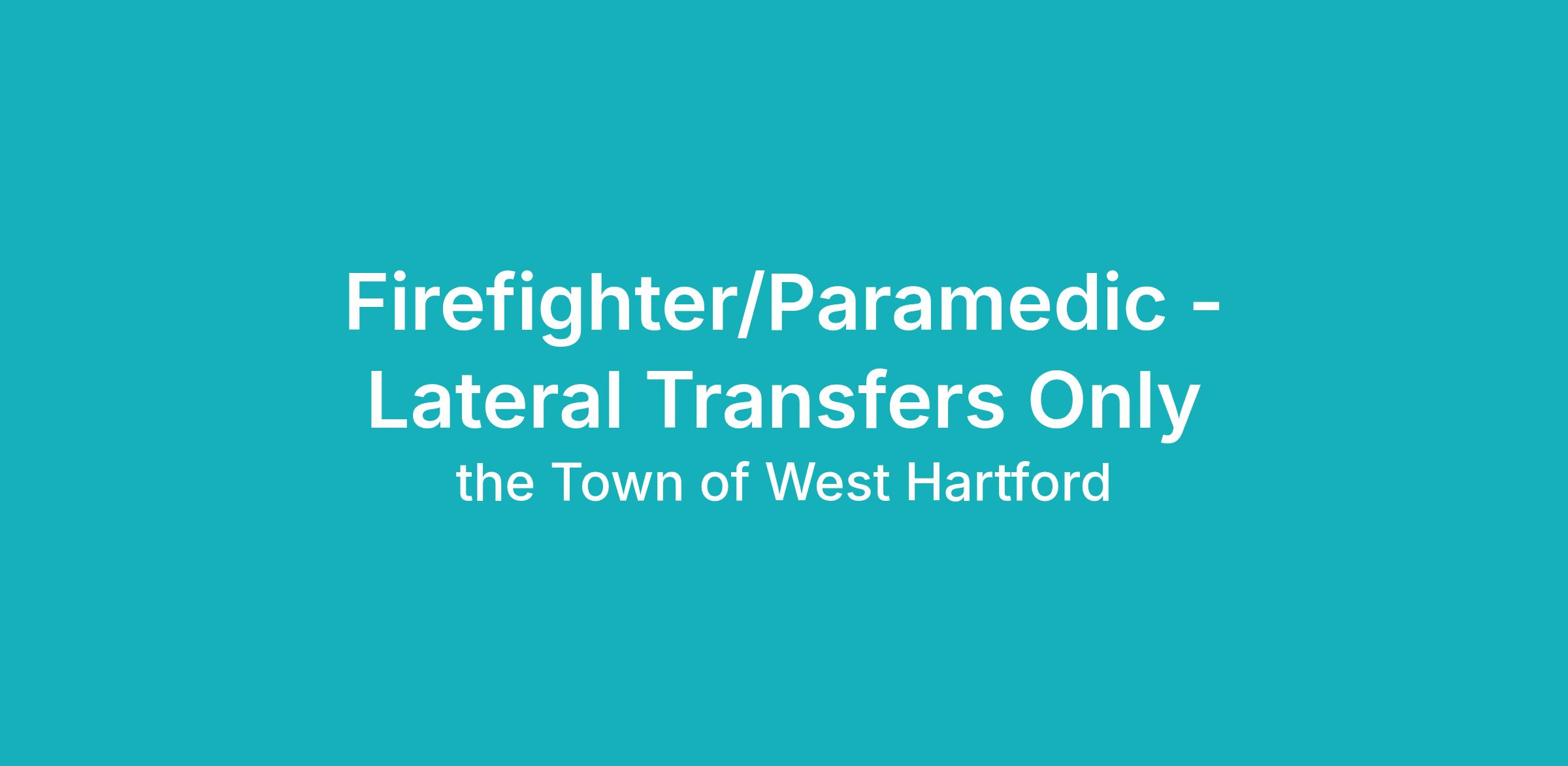 FIREFIGHTER/PARAMEDIC � LATERAL TRANSFERS ONLY