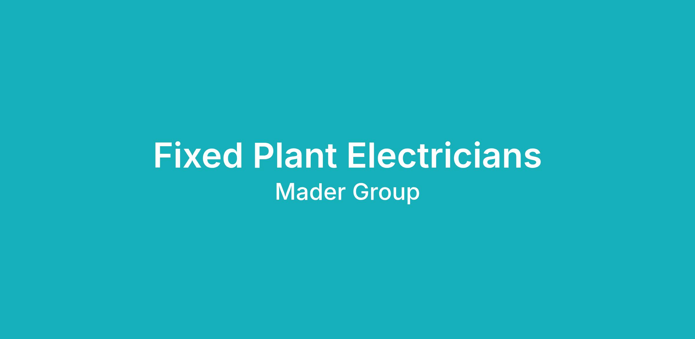 Due to continued growth, Mader are currently seeking Fixed Plant Electricians to join our Rostered Maintenance Crews on our FIFO Rostered maintenance crews enjoying a variety of 2/2, 8/6 or 2/1 rosters coming up.