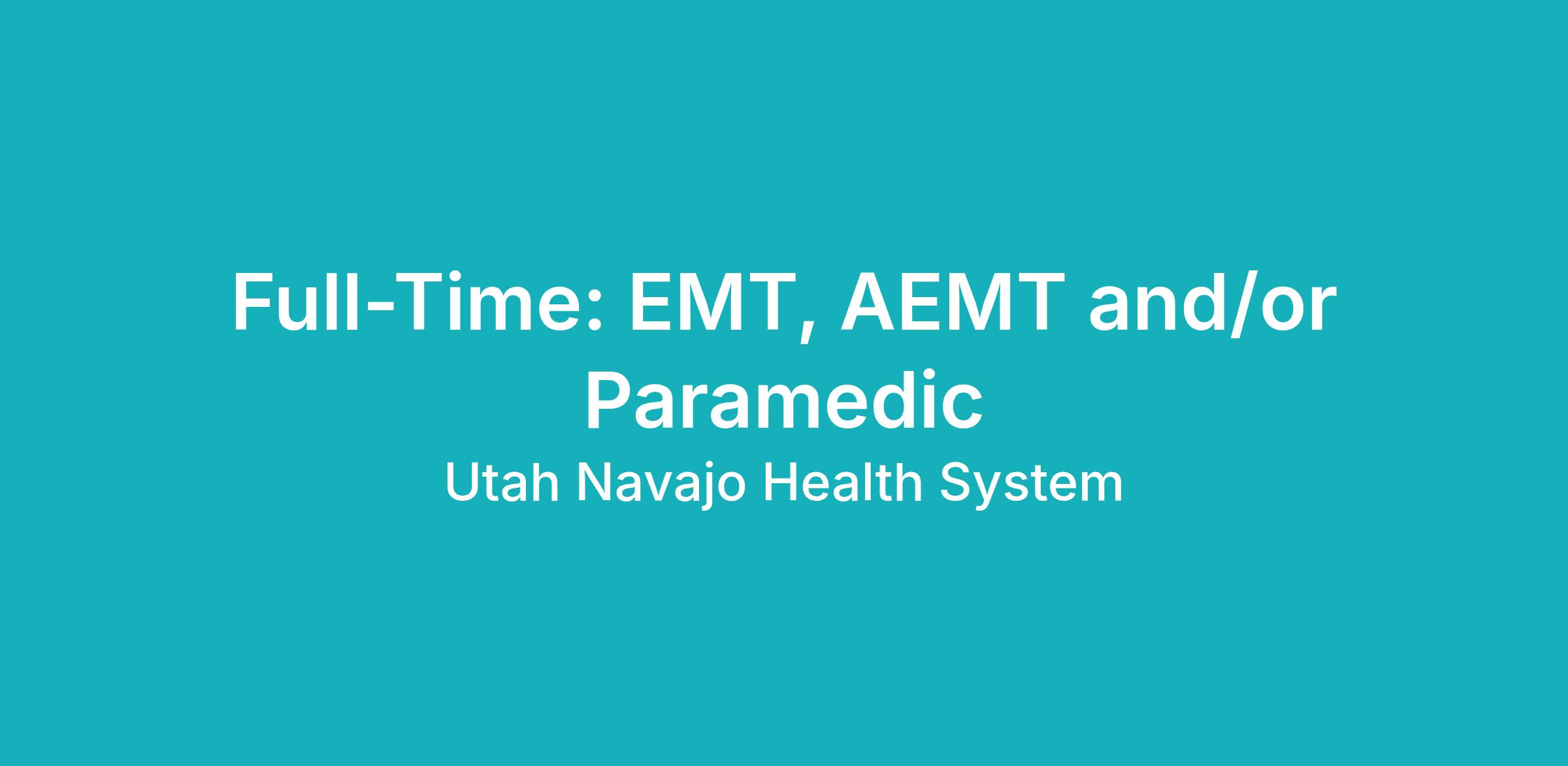 We are looking for Emergency Medical Services EMTs, AEMTs and/or Paramedics to work in our Community Health Center in Southeastern Utah. Our clinic is a dynamic place to work, practice, and grow. We have 4 primary care health centers and deliver integrated services including behavioral health, Pharmacy, Dental, specialty referrals, chronic disease management, health education, and much, much more.- Full-time Benefits start at: PTO leave, Vacation leave, 14 paid Holidays, 100% Medical/prescription insurance ($0 premium, $0 deductible, $0 copays) for employees and dependents, Life insurance, Retirement plan, wellness benefits. Optional coverage for dental, and short/long term disability.