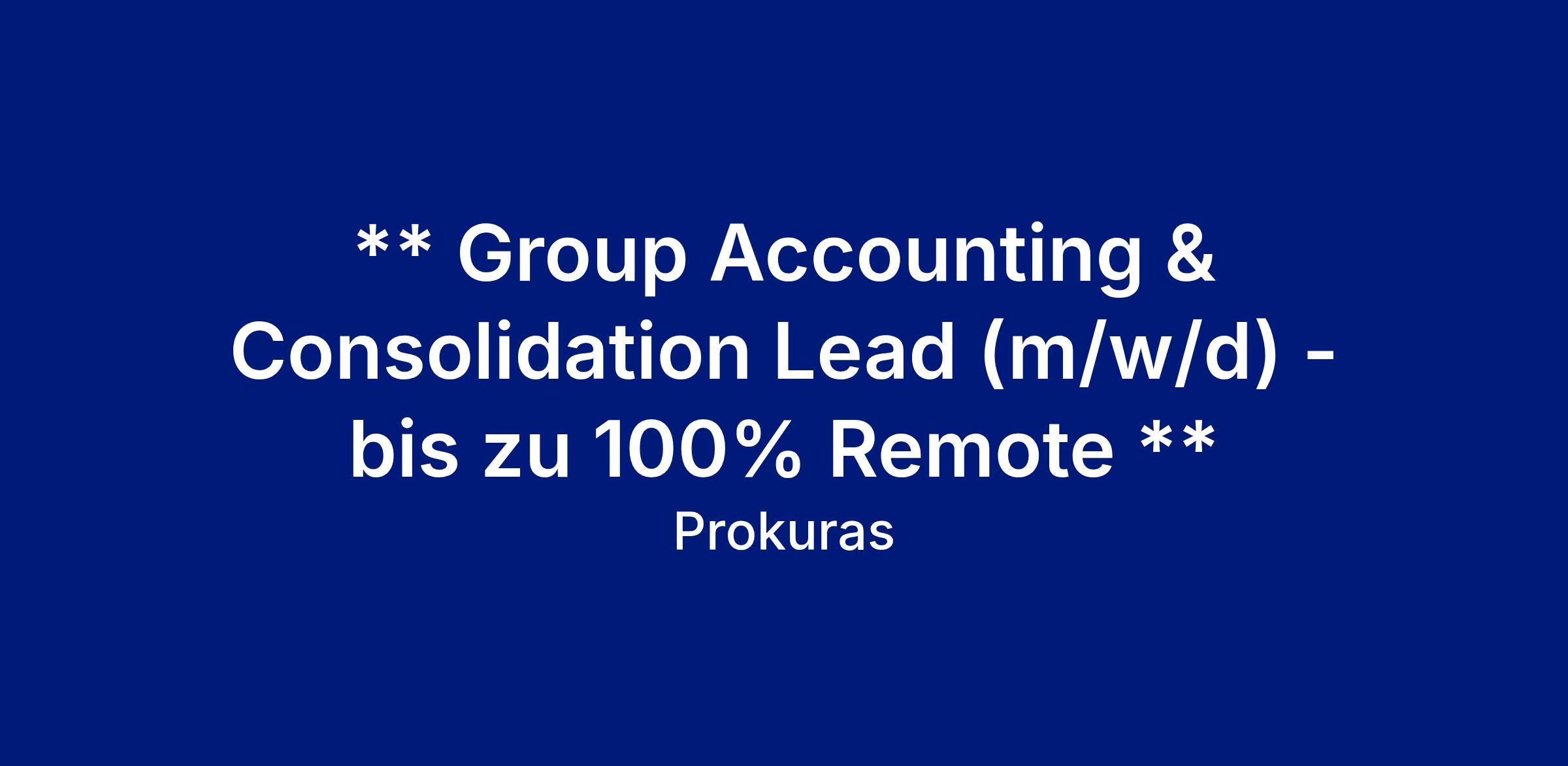 ** Group Accounting & Consolidation Lead (m/w/d) - bis zu 100% Remote **