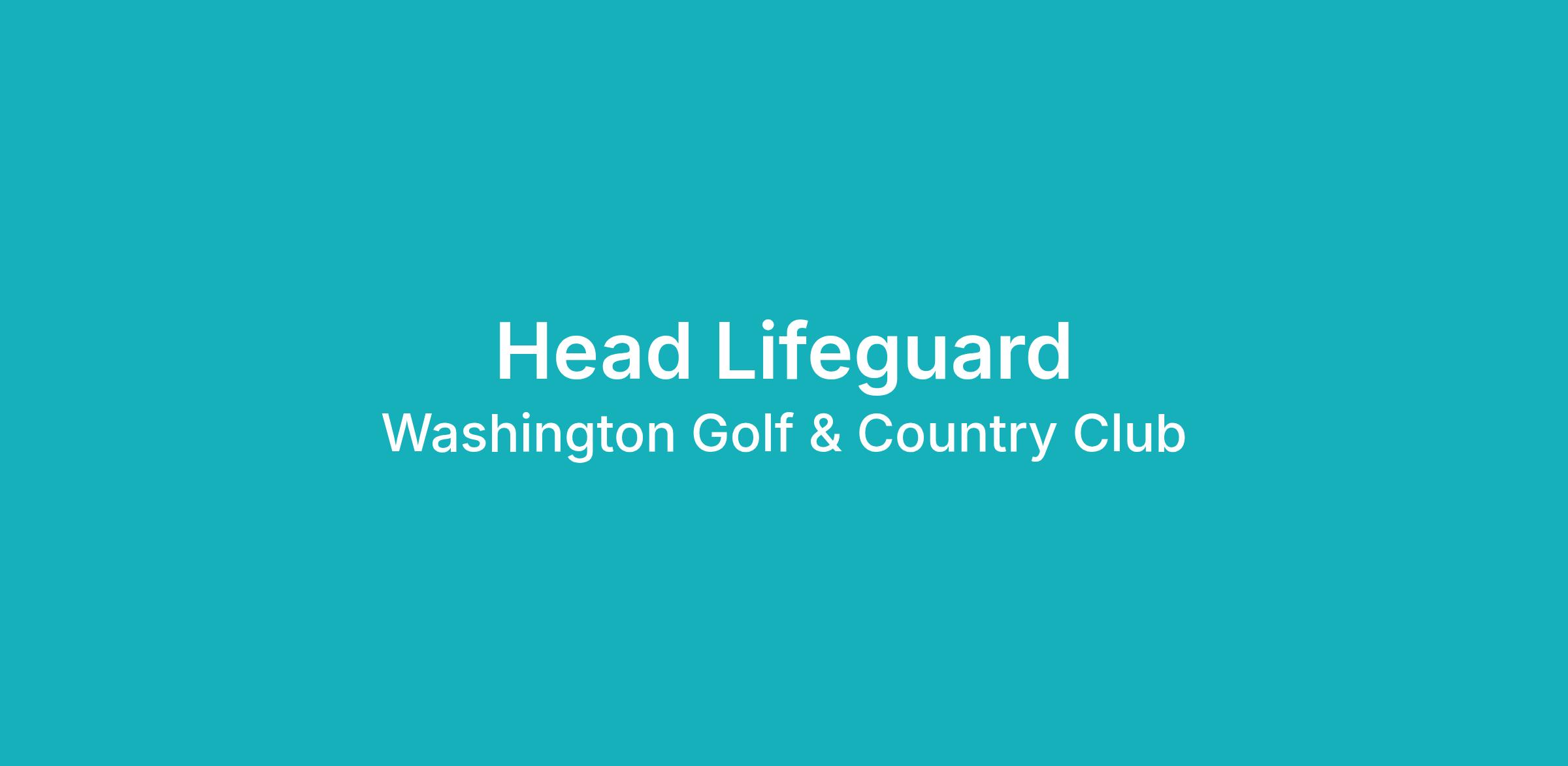 Washington Golf & Country Club (WGCC) is a private, family-oriented club in Arlington, Virginia, and we are hiring Seasonal Head Lifeguards for the upcoming pool season. This is a great opportunity for individuals who are responsible, safety-minded, and looking for a fun, team-oriented summer position.