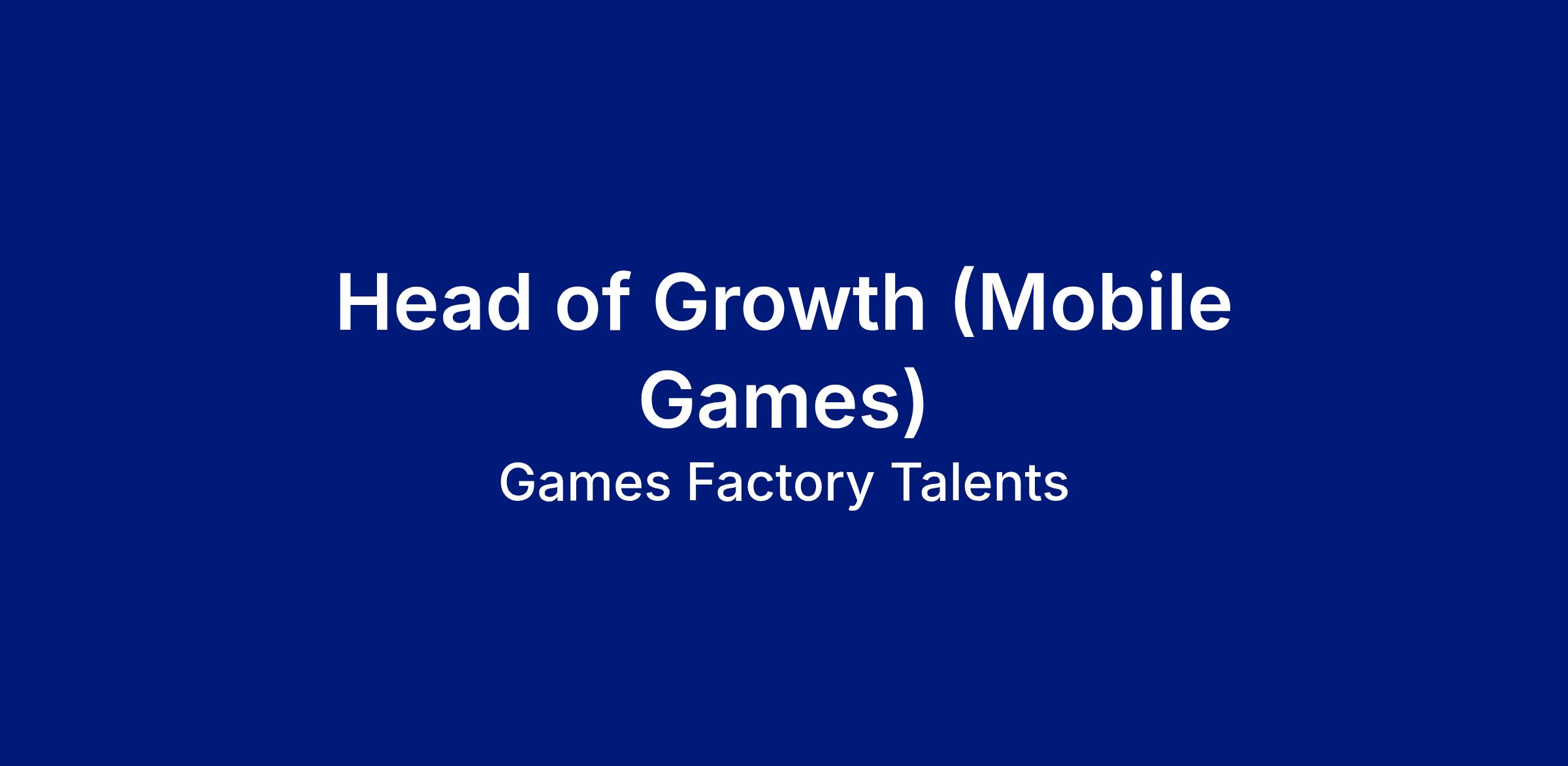 Weâre looking for a Head of Growth to lead a specialist growth function focused on mobile games.