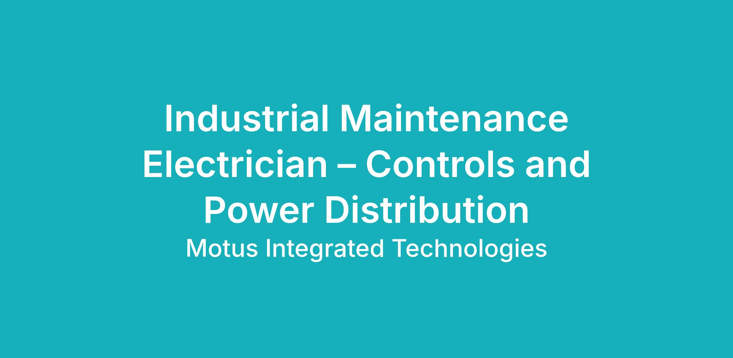 Industrial Maintenance Electrician – Controls and Power Distribution
