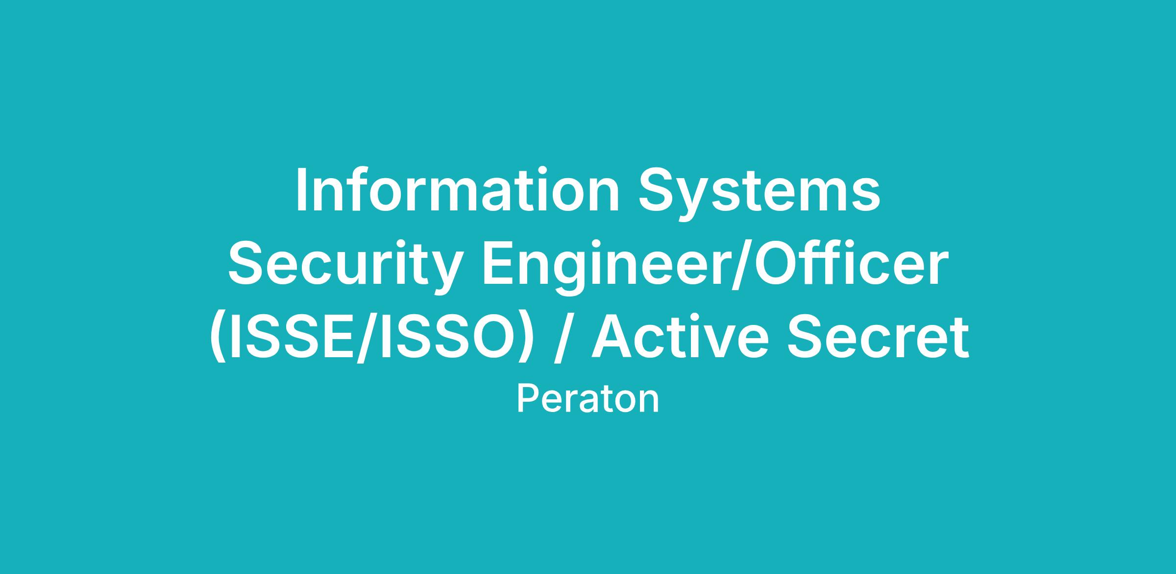 Peraton is seeking to hire an experienced Information Systems Security Engineer/Officer (ISSE/ISSO) – Dept. of Navy Support.