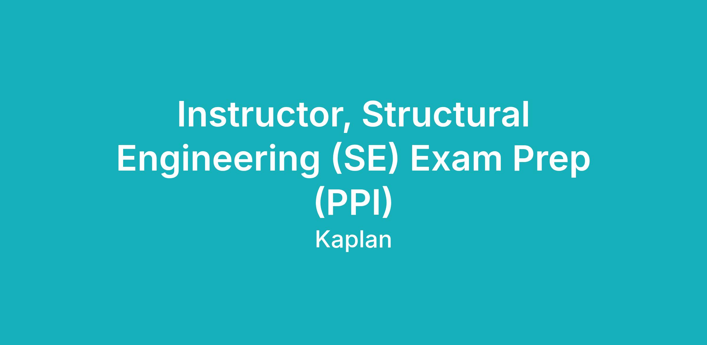 Instructor, Structural Engineering (SE) Exam Prep (PPI)Job Description