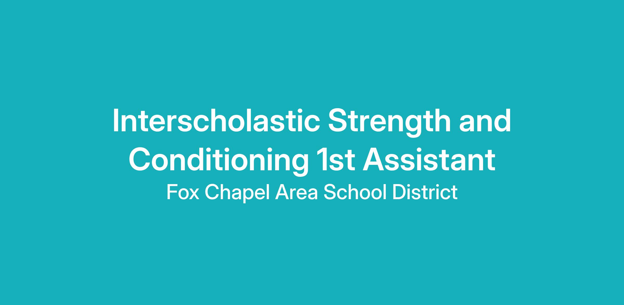 The Fox Chapel Area School District is seeking an Interscholastic Athletic Strength and Conditioning 1st Assistant for the remainder of 2025-2026 school year.