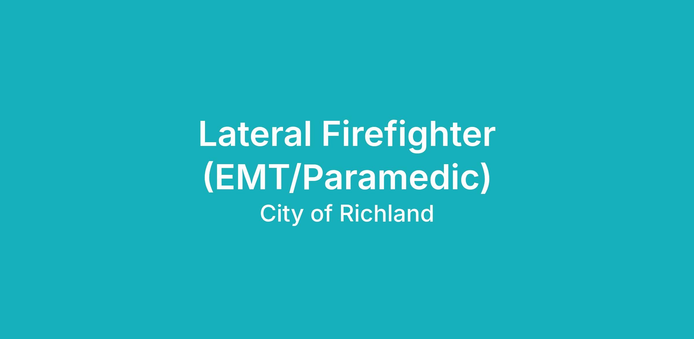 The Richland Fire & Emergency Services department is seeking Lateral Firefighter* applicants. If you are currently a professional full-time Firefighter with three years of consecutively paid experience at a like department (reviewed case by case), have successfully passed your probationary period with your current Firefighter employer, you may be considered as a Lateral Firefighter*. The Department maintains an ongoing and merged certification list for the Lateral Firefighter EMT/Paramedic position.