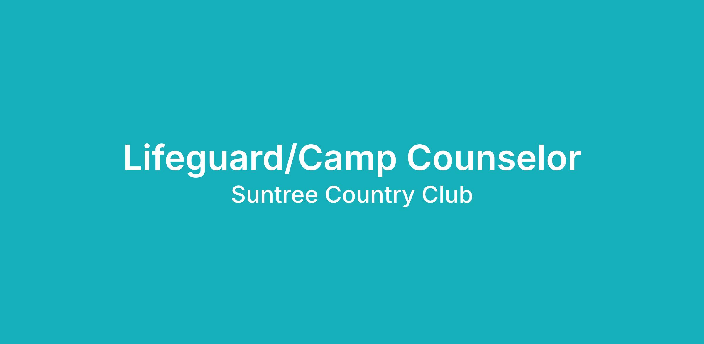 For the Summer Season starting June 1st, Suntree Country Club is seeking a positive, energetic, experienced, and highly capable professional who will ensure swimmers' safety in the pool area, administer first aid or lifesaving techniques when needed and be a camp counselor. The Lifeguard/Camp Counselor will report to the Assistant Events Director/Events Director.