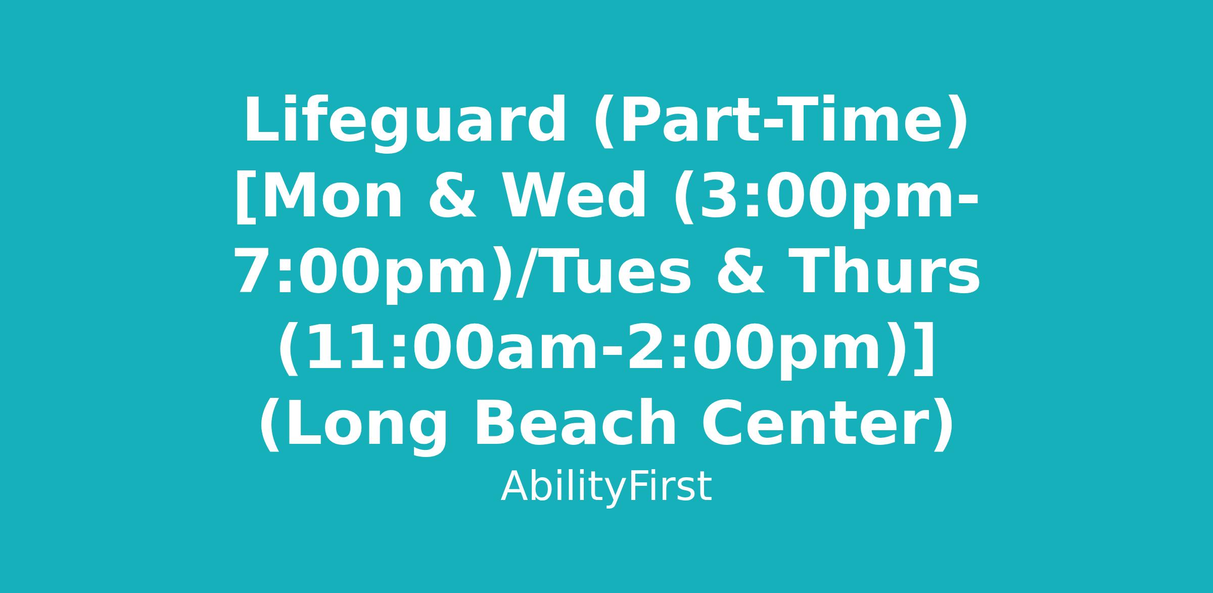 Lifeguard (Part-Time) [Mon & Wed (3:00pm-7:00pm)/Tues & Thurs (11:00am-2:00pm)] (Long Beach Center)