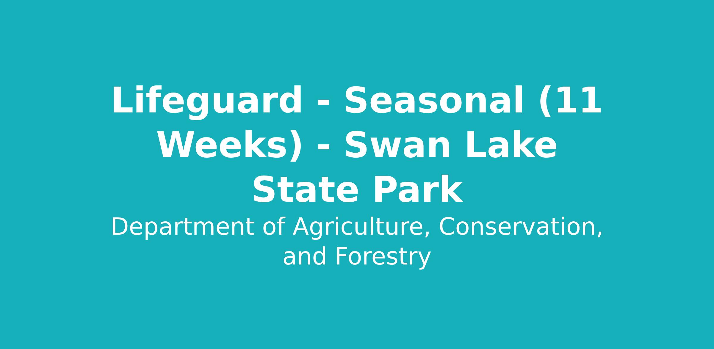 The Department of Agriculture, Conservation and Forestry, Bureau of Parks and Lands Division, are recruiting to fill a Seasonal Full Time Lifeguard position (11 weeks) located at Swan Lake State Park.DEPARTMENT OF AGRICULTURE, CONSERVATION & FORESTRY