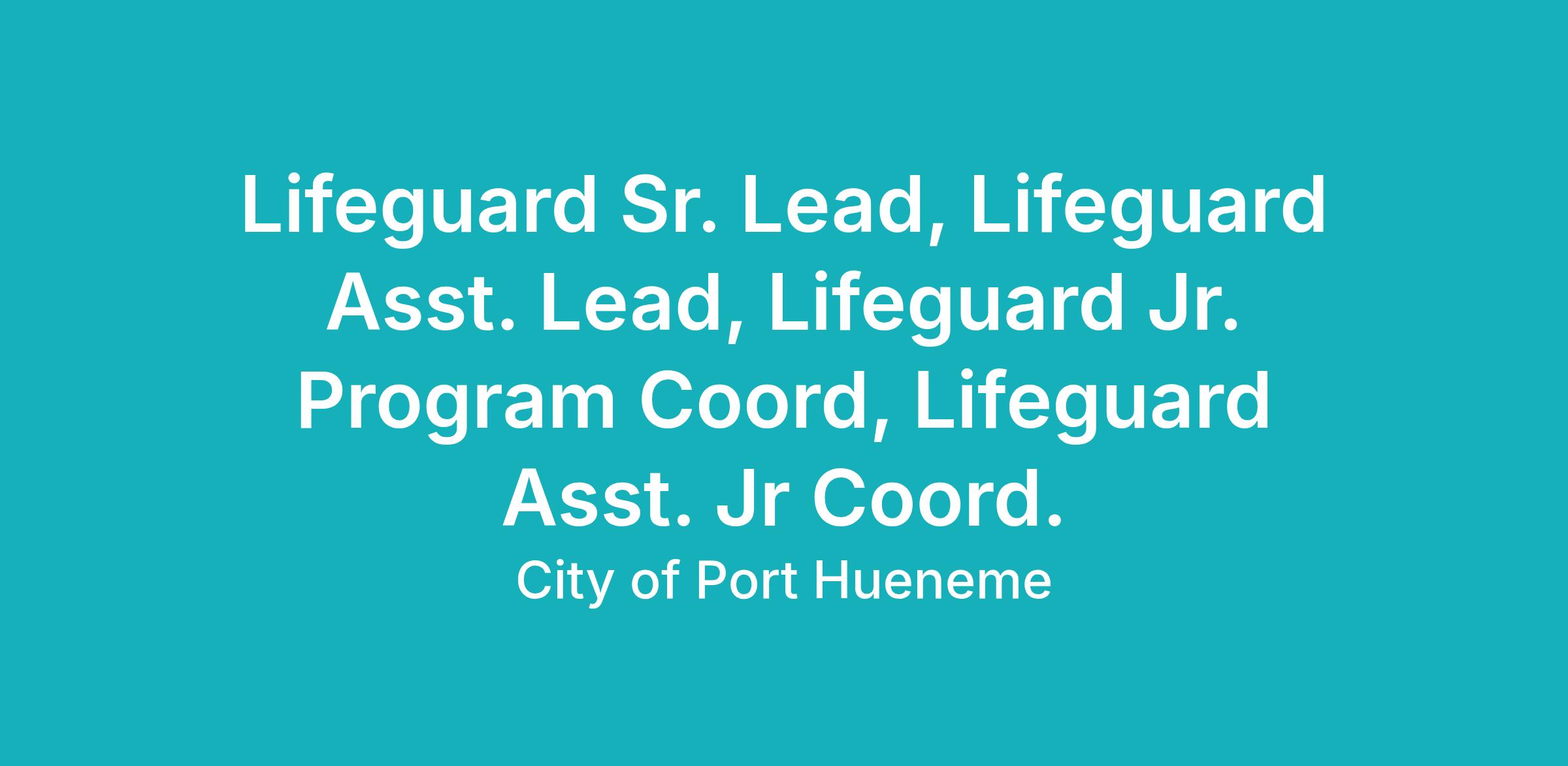 - Lifeguard Senior Lead: Must be willing and available to work 4-5 shifts per week or the equivalent 32-40 hours on various shifts over different days/times (Monday through Sunday) of different lengths over the summer seasonal beach operation.