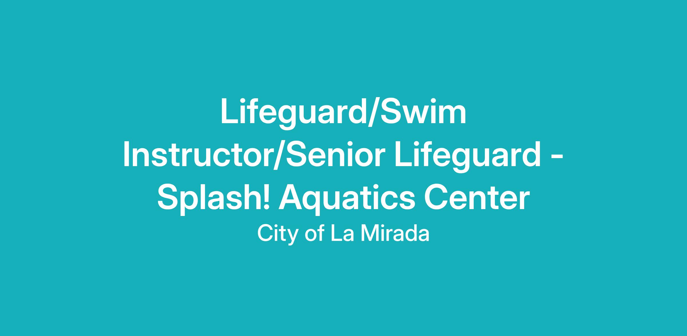 Senior Lifeguard, Possession of a valid California Class C Driver License is required.Swim Instructor, Lifeguard, and Senior Lifeguard, Completion of the City of La Mirada Aquatics Certification Schools as assigned upon hire.