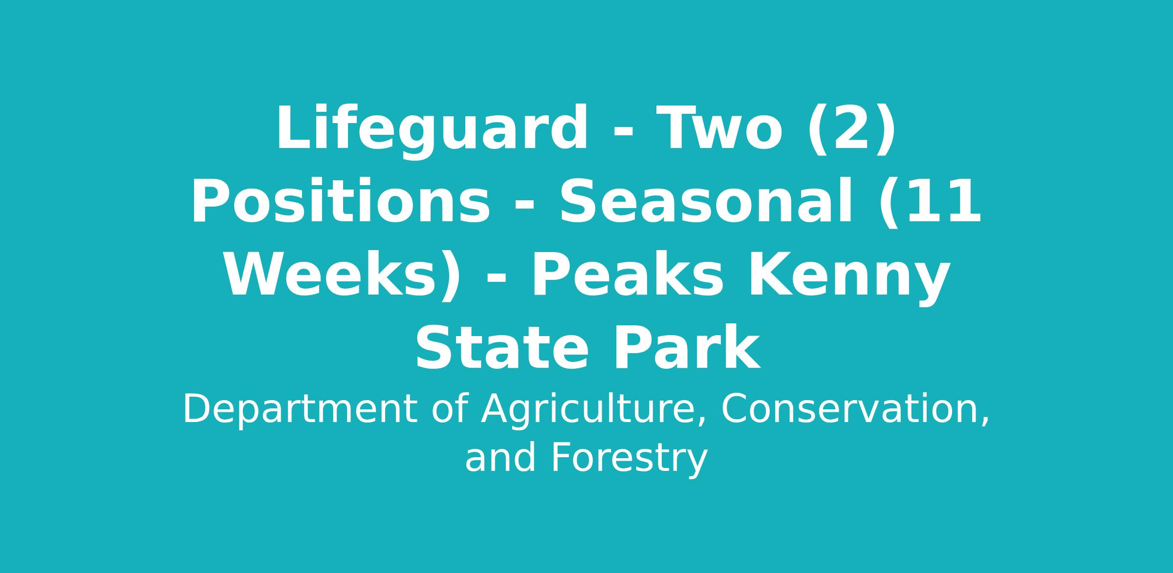 The Department of Agriculture, Conservation and Forestry, Bureau of Parks and Lands Division, is recruiting staff to fill two (2) Seasonal Full Time Lifeguard positions (11 weeks) located at Peaks Kenny State Park.DEPARTMENT OF AGRICULTURE, CONSERVATION & FORESTRY
