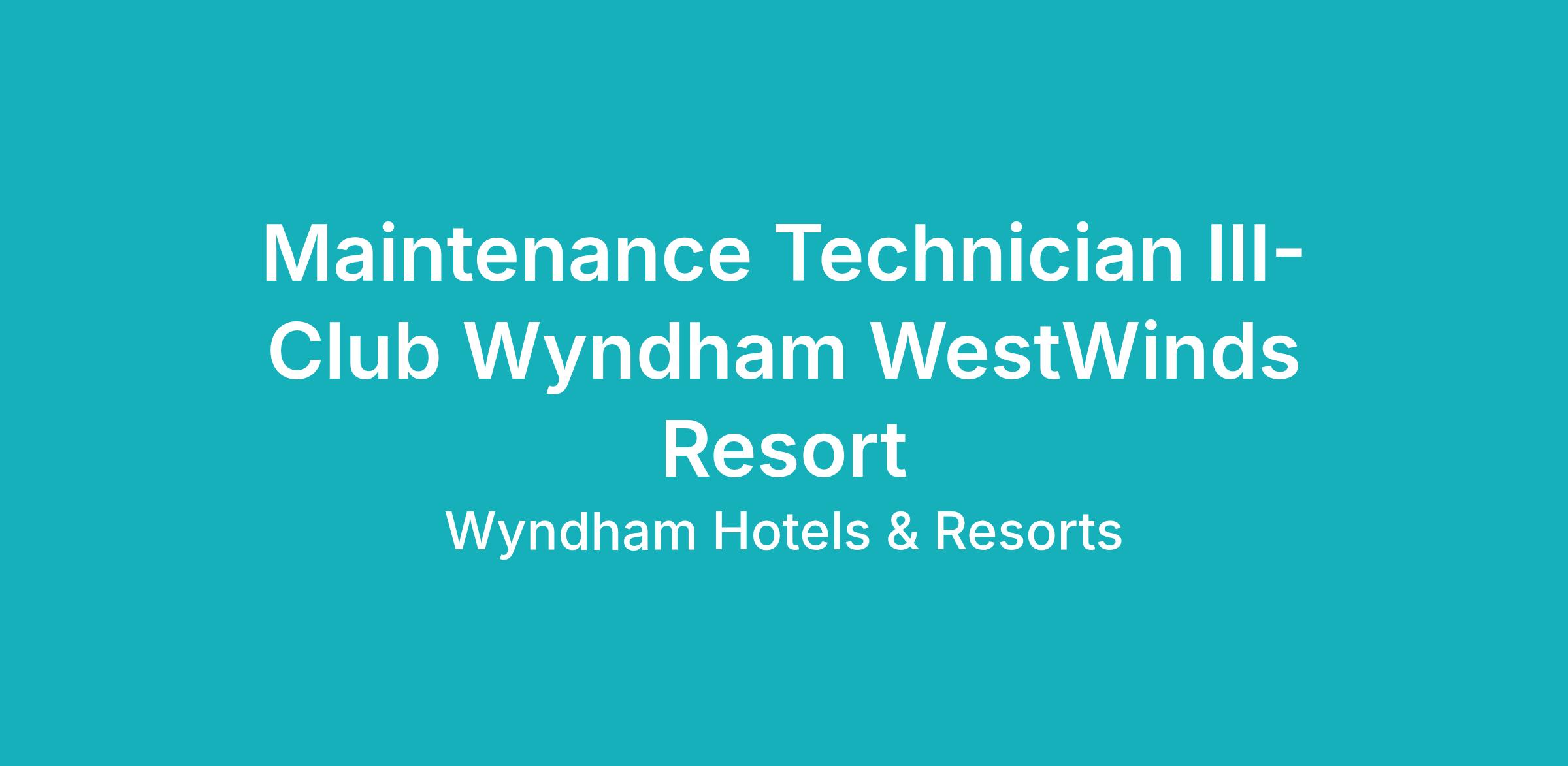As a Maintenance Technician III, you’ll make dream vacations by providing quality results for our guests by using your maintenance skills, customer service expertise and guaranteeing each unit and building is in perfectly working order.