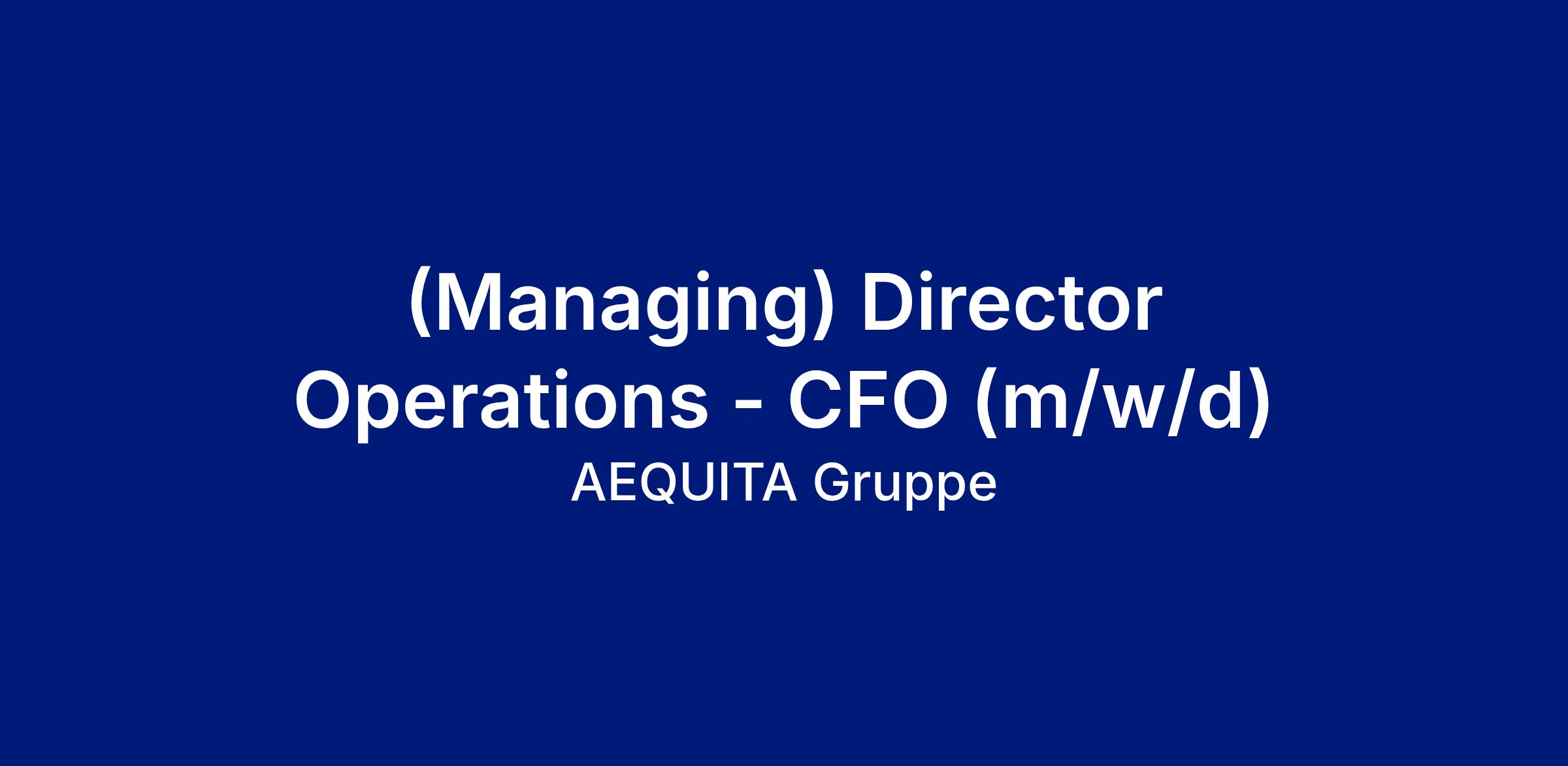 (Managing) Director Operations - CFO (m/w/d)