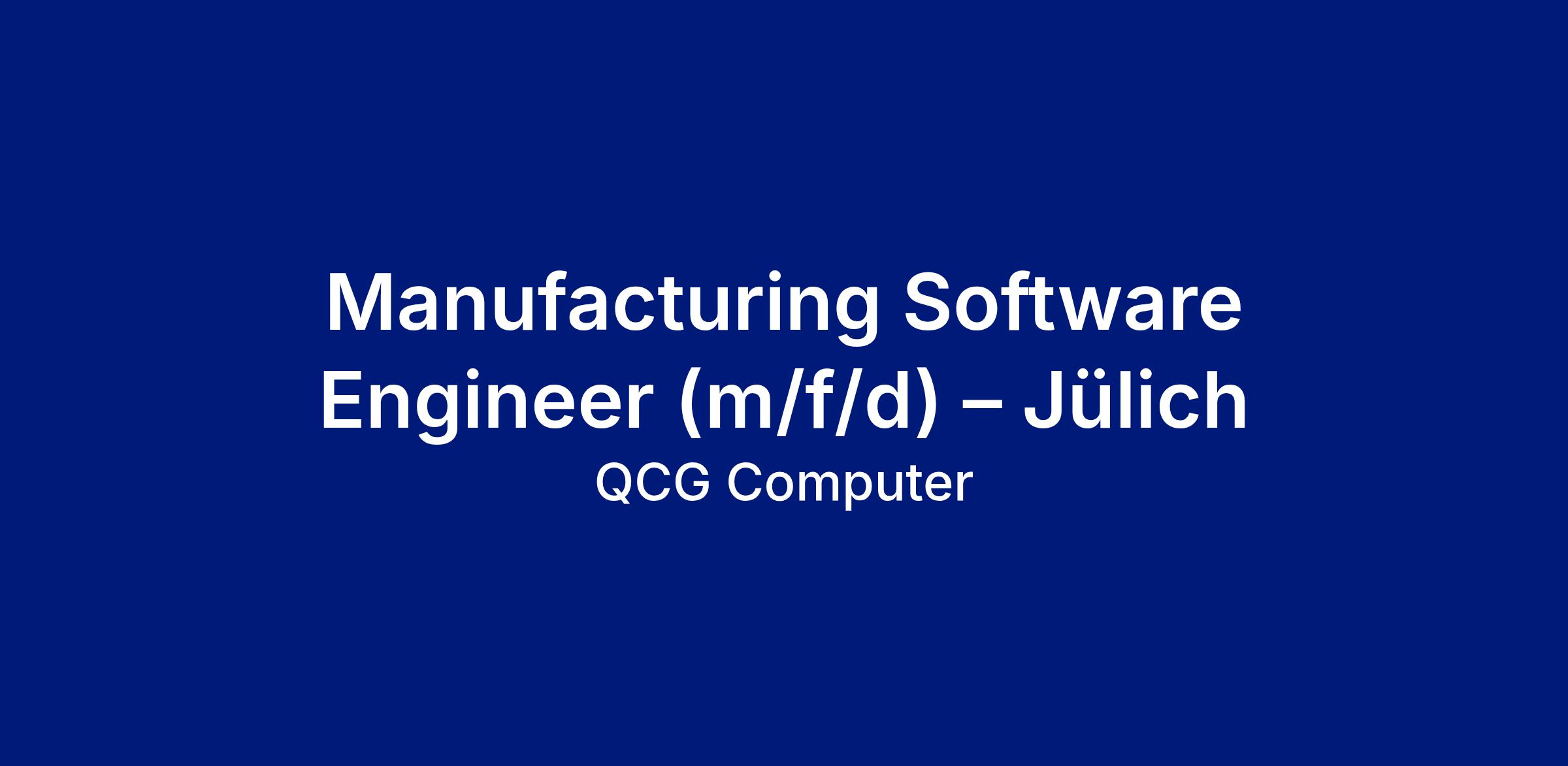 Manufacturing Software Engineer (m/f/d) – Jülich