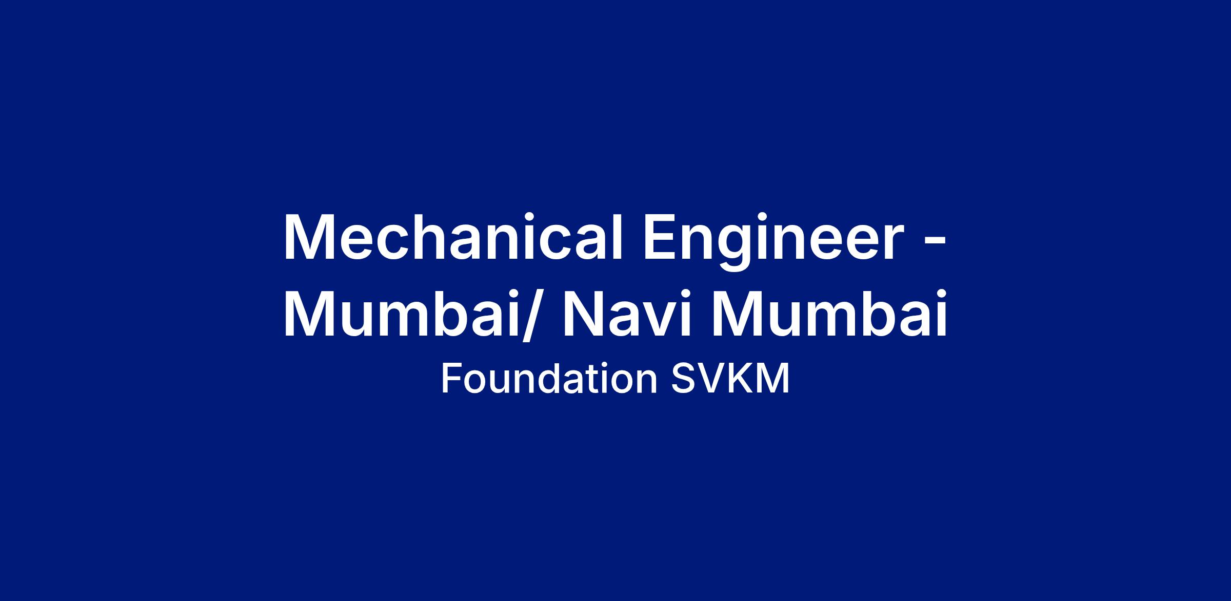 Qualification: B.E. – Mechanical Engineering from reputed Institute.