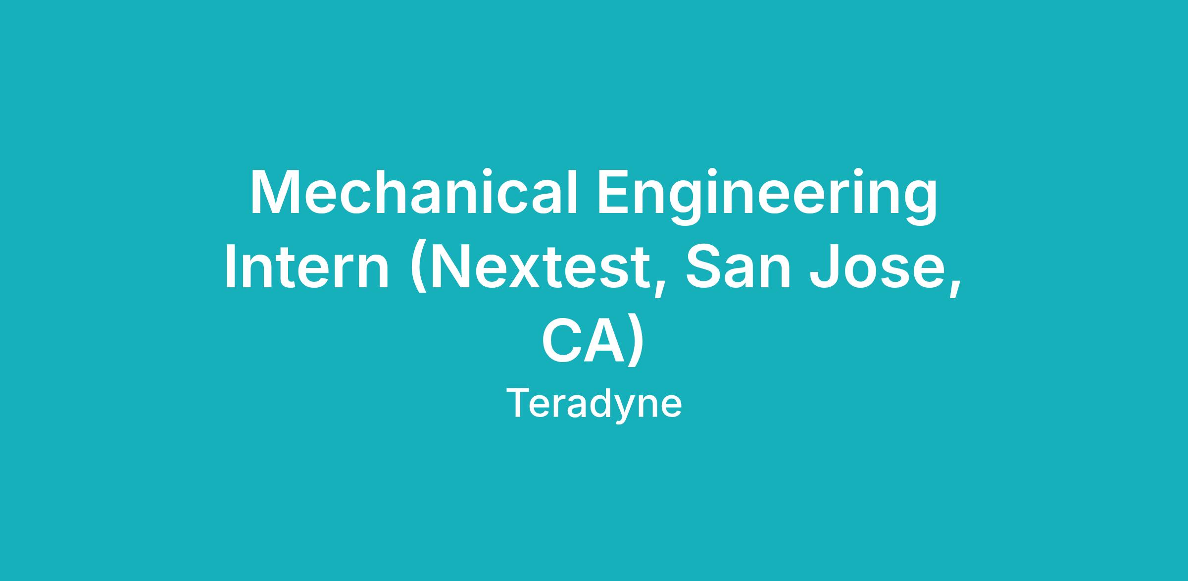 The Nextest Division of Teradyne, located in San Jose CA is currently looking for a Mechanical Engineering Intern to join the team.