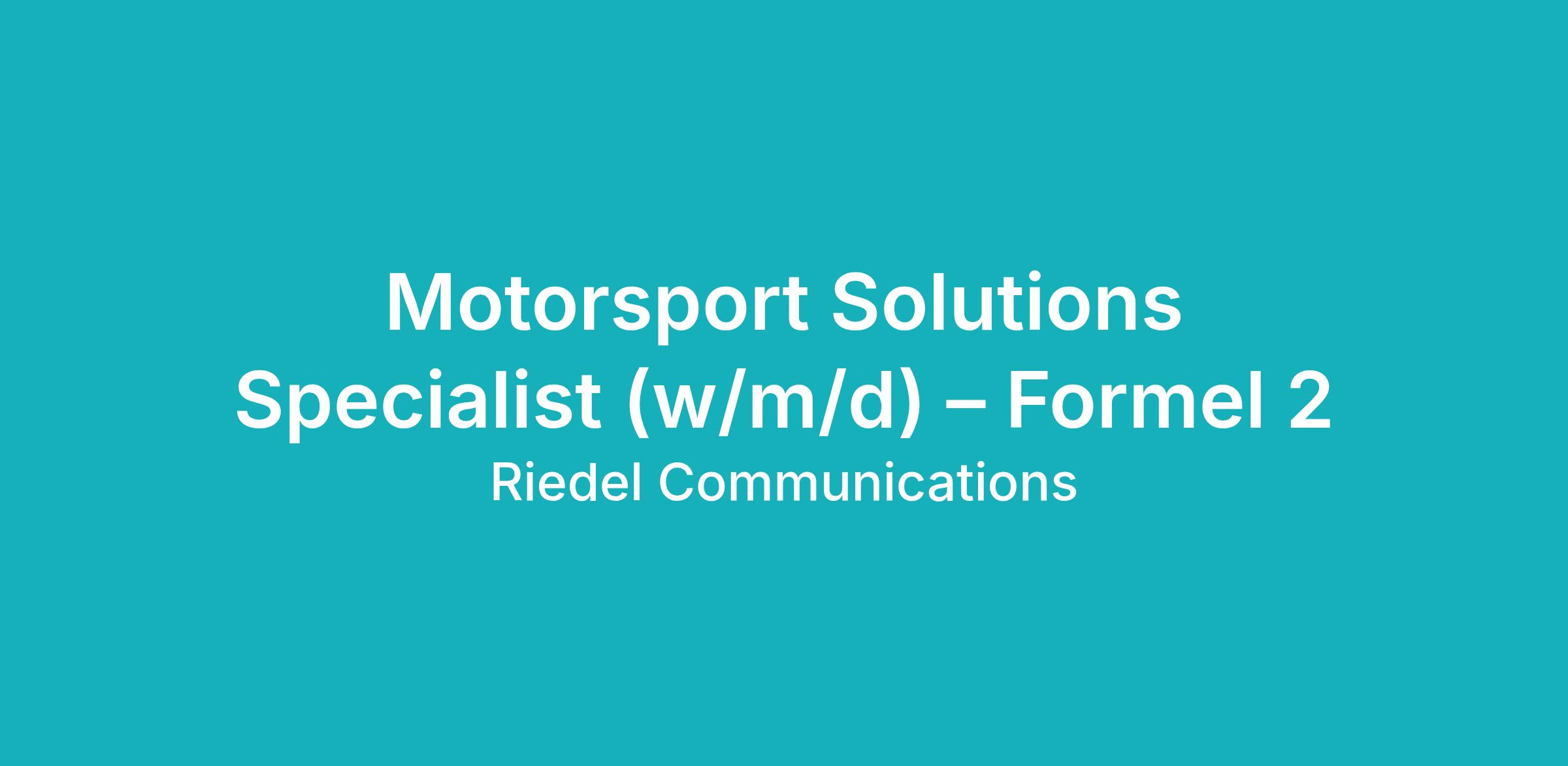 Komm mit uns als Motorsport Solutions Specialist - Formel 2 (w/m/d) auf diese aufregende Reise und erlebe die Faszination von Riedel Communications in Aktion.