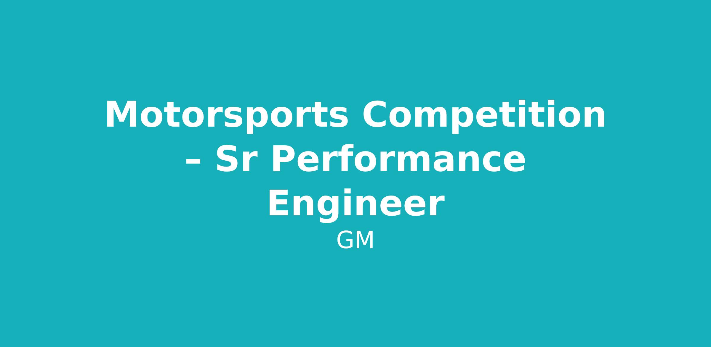 Motorsports Competition – Sr Performance Engineer