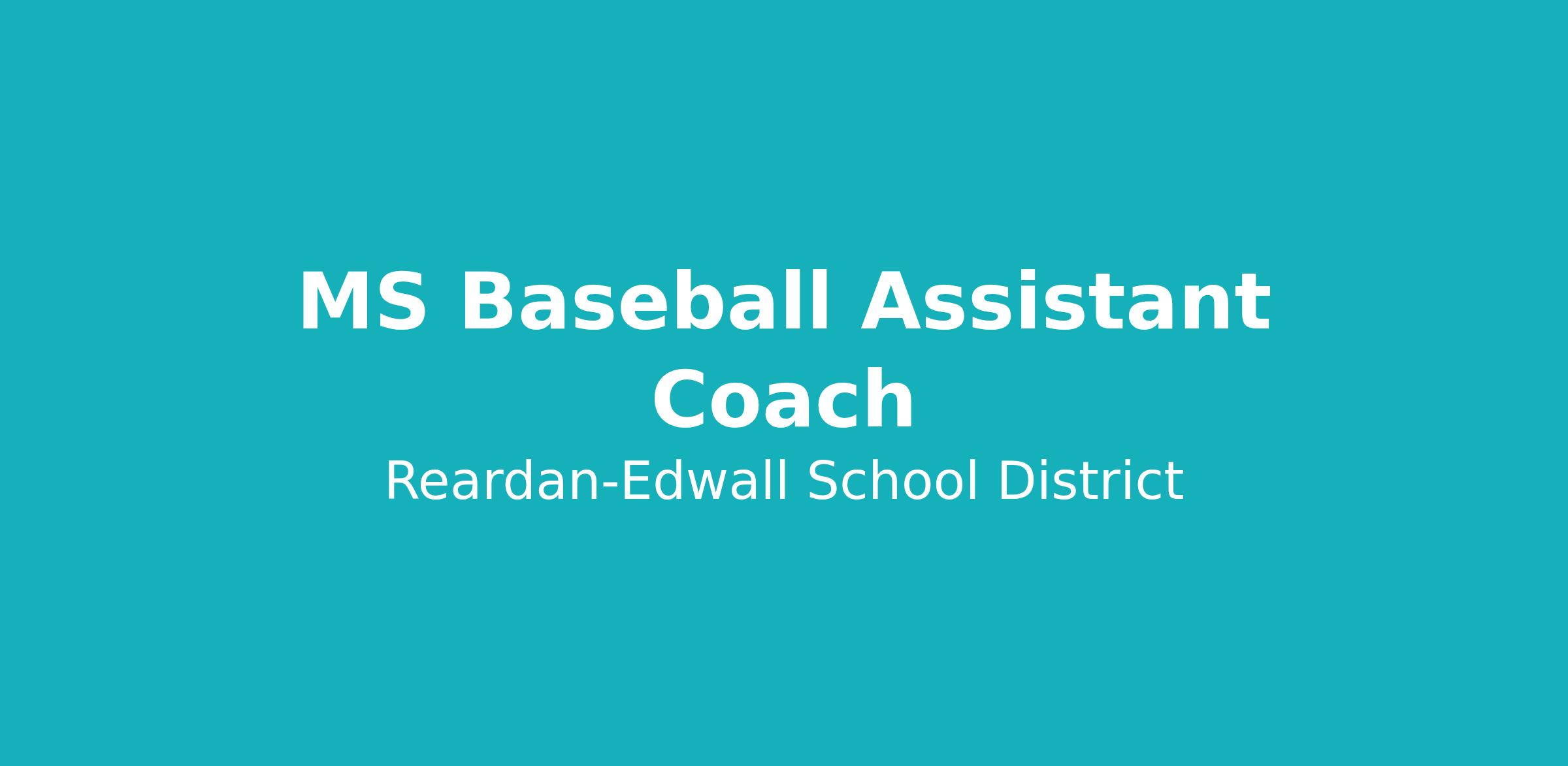 We are seeking a dedicated and enthusiastic individual to join our coaching staff as an Assistant Coach for the Middle School Baseball team at Reardan Middle School. This seasonal position is ideal for someone with a passion for the sport and a desire to mentor young athletes. The Assistant Coach will work closely with the Head Coach to develop players' skills, promote teamwork, and foster a positive and competitive environment. See the attached job description for more information!