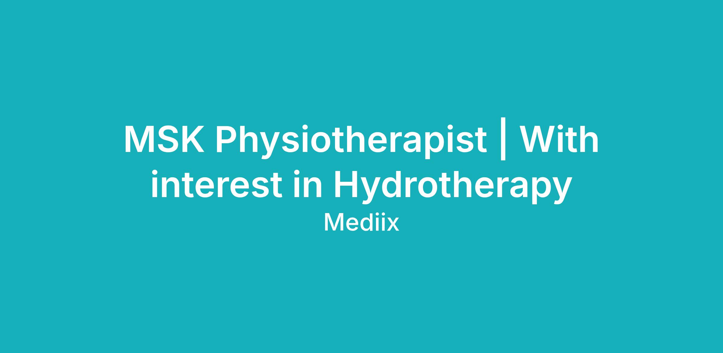 This role offers a mixed caseload including musculoskeletal rehabilitation, post-surgical recovery, and general physiotherapy. An interest in hydrotherapy would be highly regarded, as there may be opportunities to run hydrotherapy sessions as part of the treatment programs.