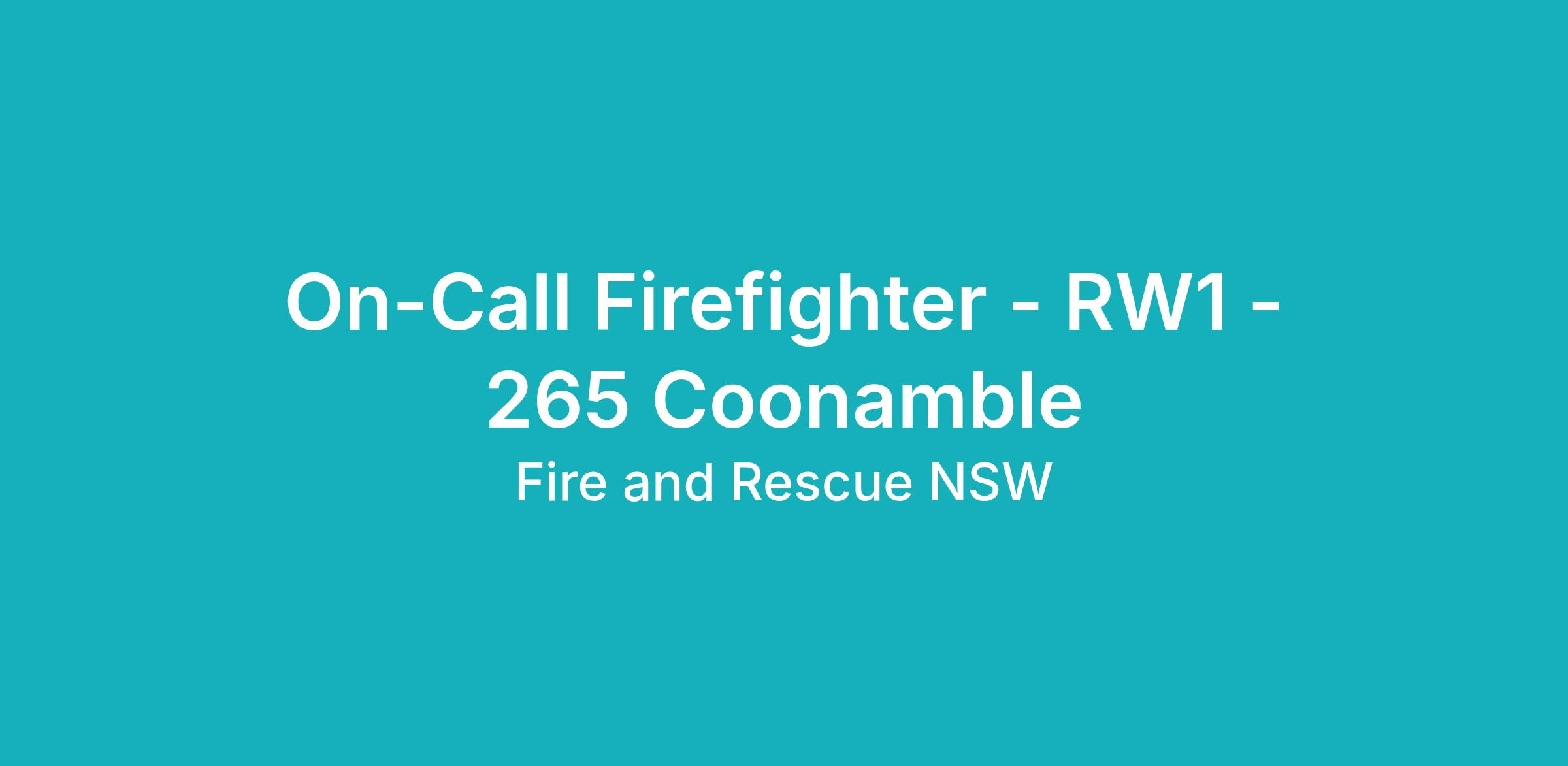 On-Call Firefighter - RW1 - 265 Coonamble