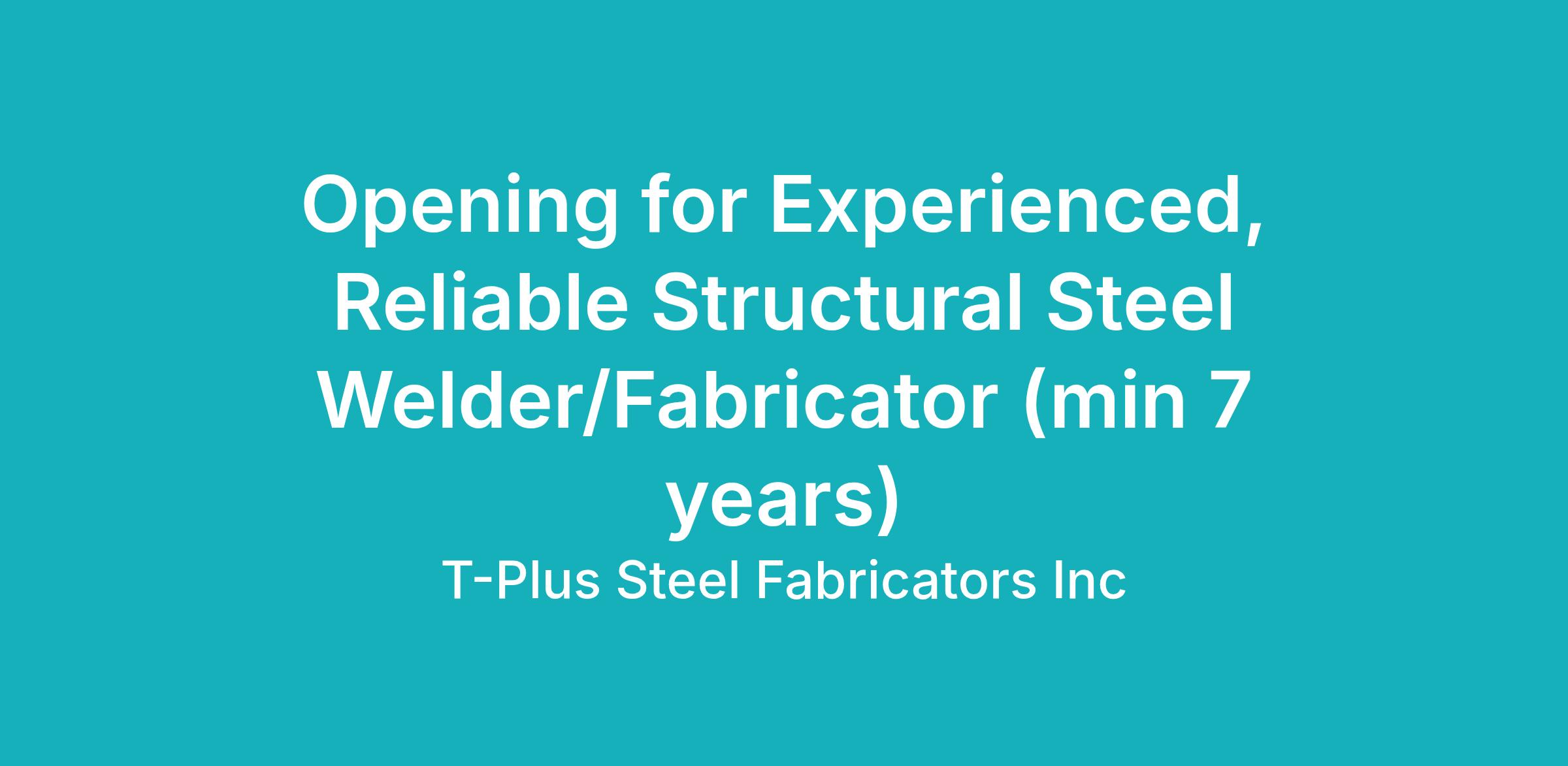 Experienced Steel Welder/Fabricator: