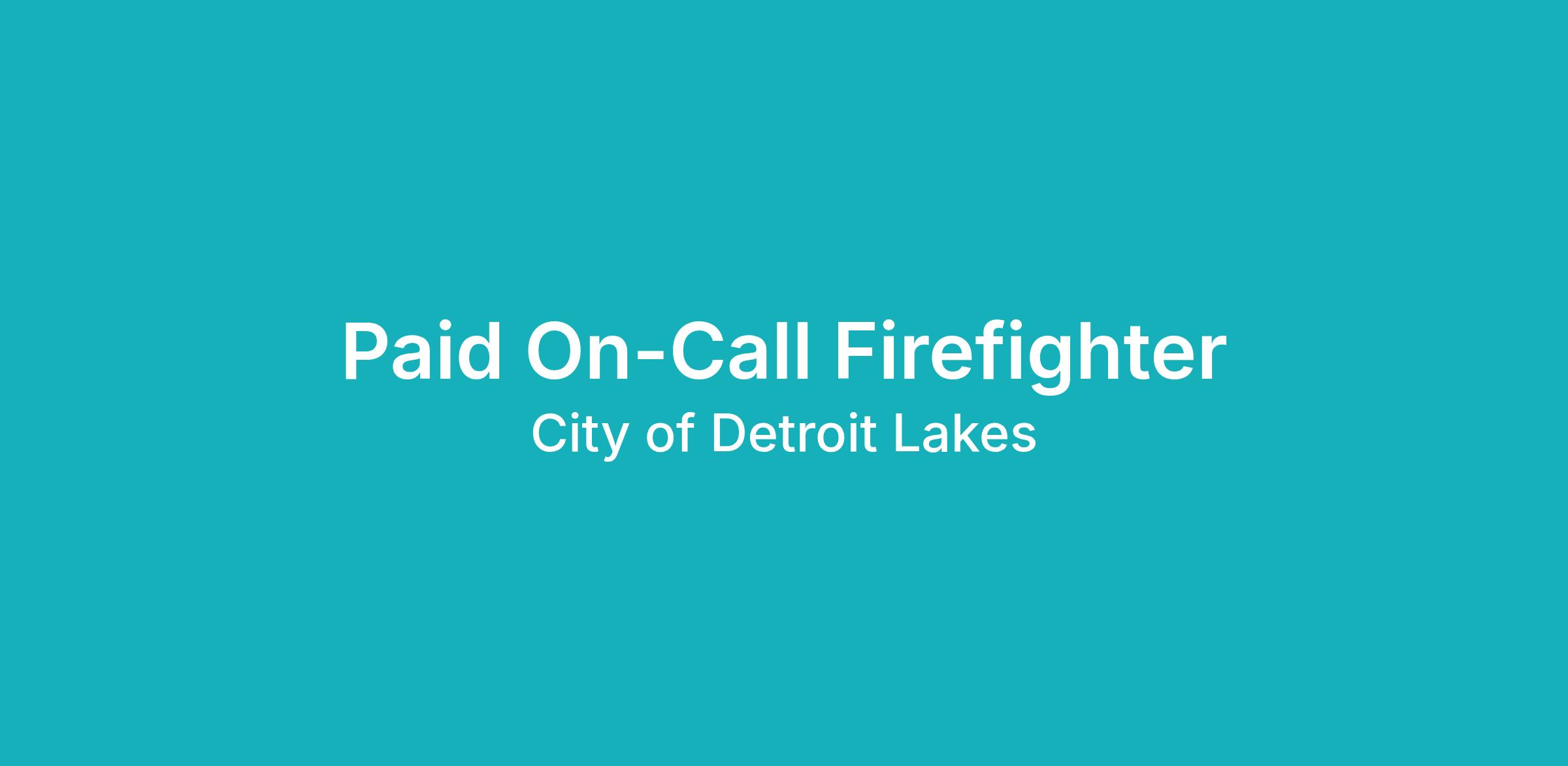 The City of Detroit Lakes is accepting applications for the position of Paid On-Call Firefighter. This position performs skilled and semi-skilled work in protecting life and property through fire suppression, rescue operations, and emergency response services within the City of Detroit Lakes and surrounding area.