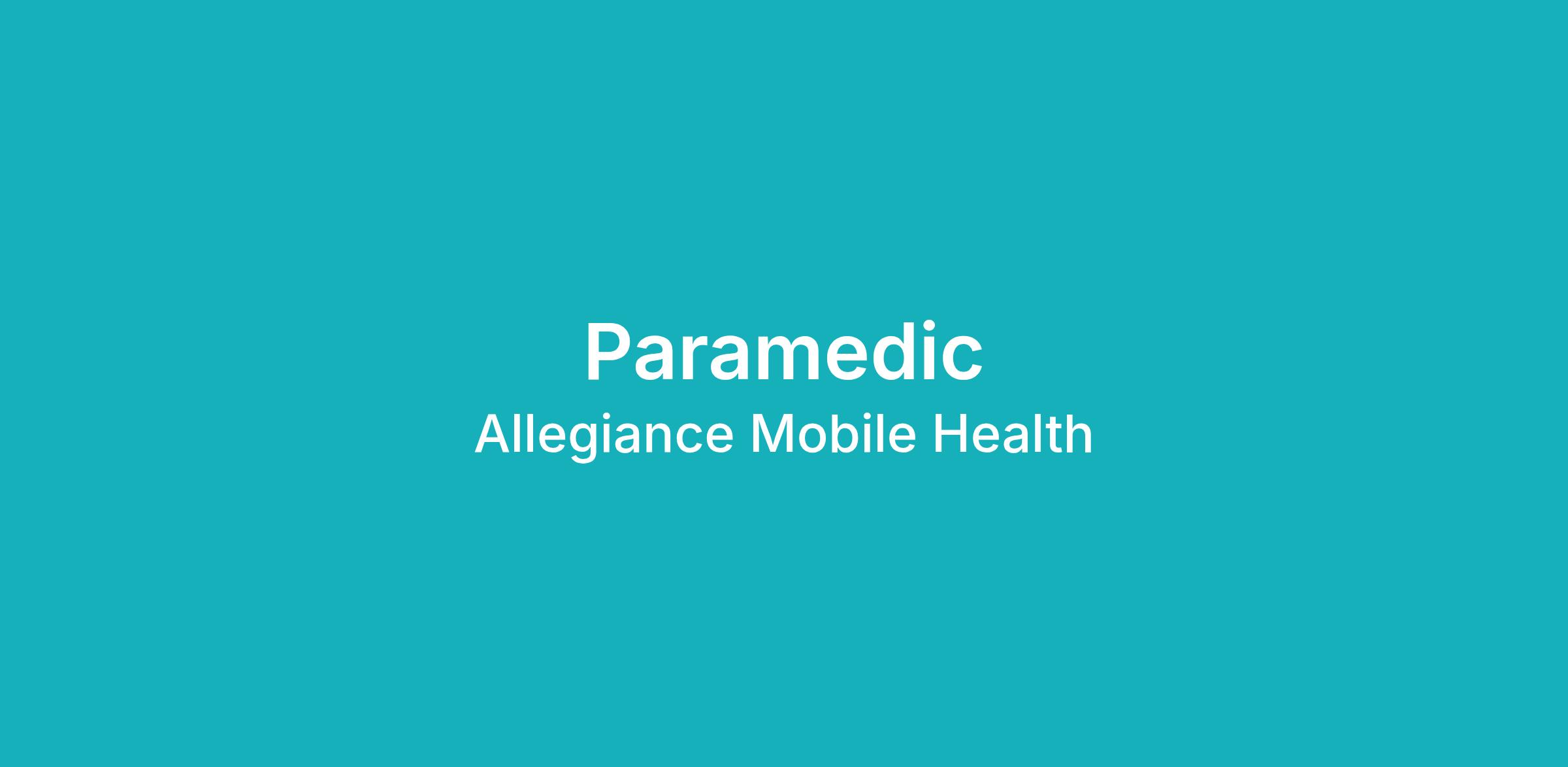 Allegiance Mobile Health of North Austin and Pflugerville, TX is looking to hire Paramedics (EMT P).