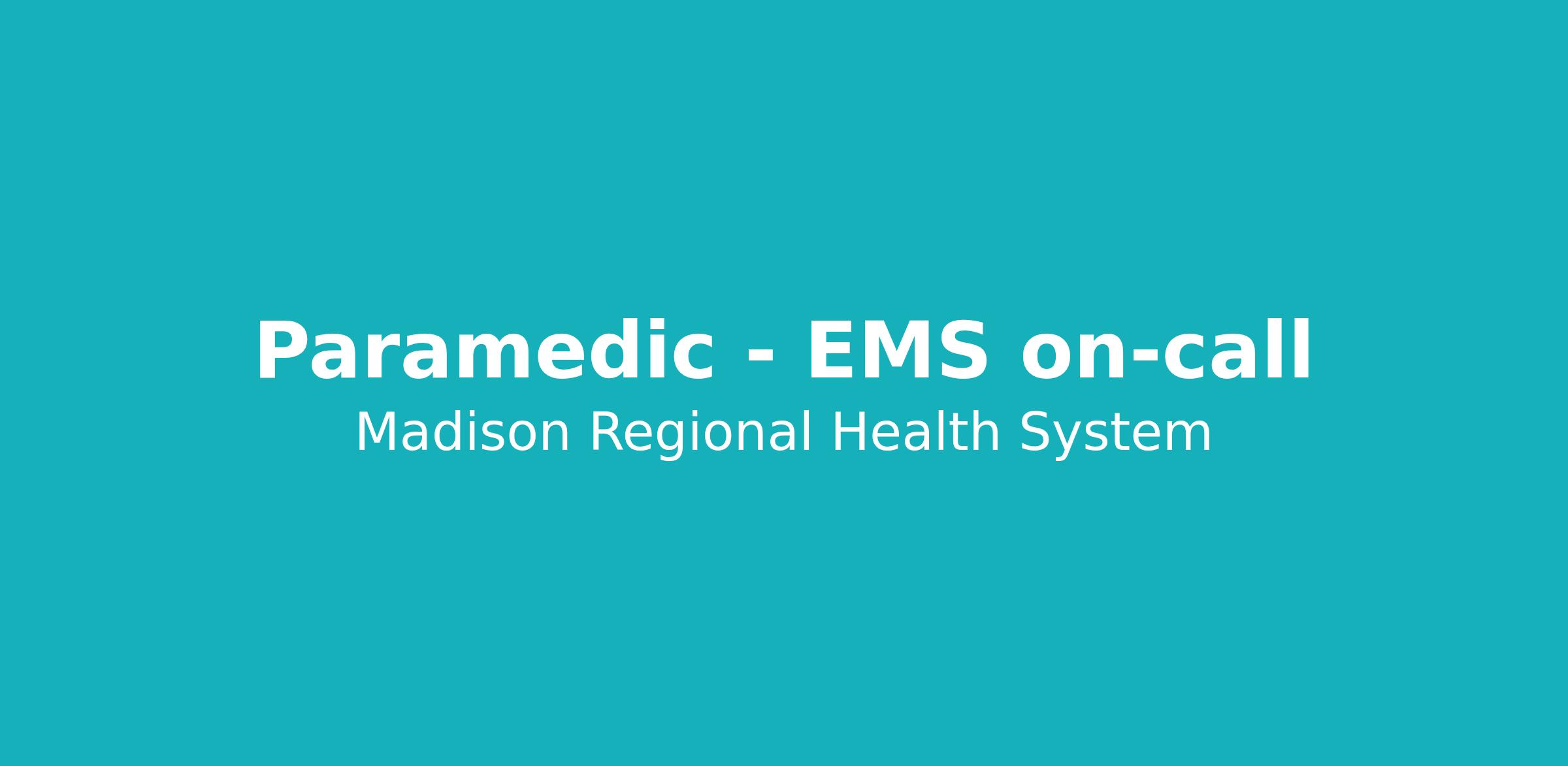 Madison Regional Health System is seeking a Paramedic to be a part of the Madison Regional Health System mission: Committed to providing quality healthcare, close to home.
