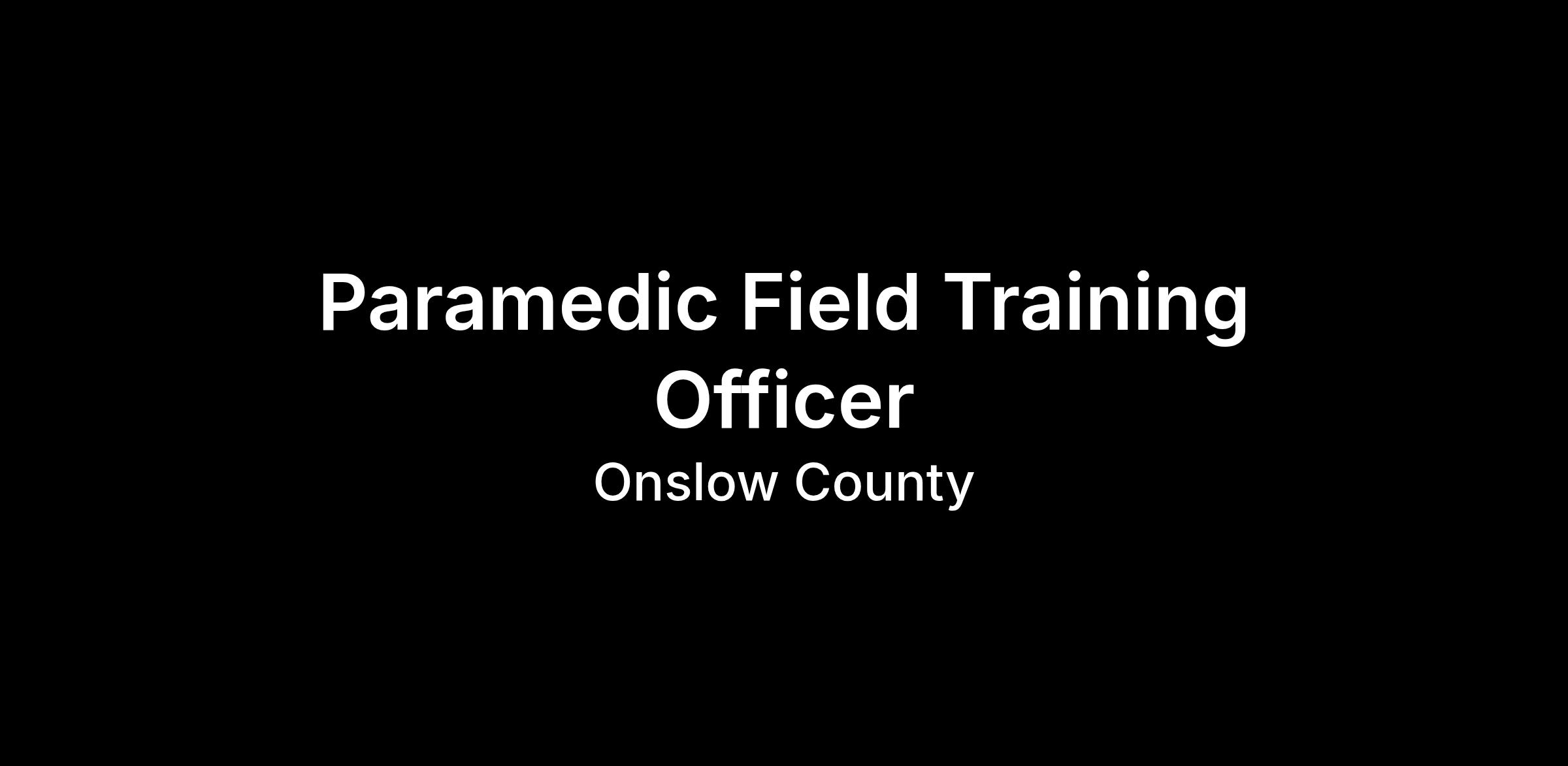 The Paramedic Field Training Officer (FTO) is responsible for direct and indirect instruction, and evaluation of all Onslow County Emergency Medical Service (OCEMS) personnel. The Field Training Officer provides direct observation, management, and evaluation of new employees and employees needing remedial work/evaluation. This position is assigned to full time daily operations on an ambulance. FTO duties are performed under the moderate supervision of the EMS Training Officer and District Chief.