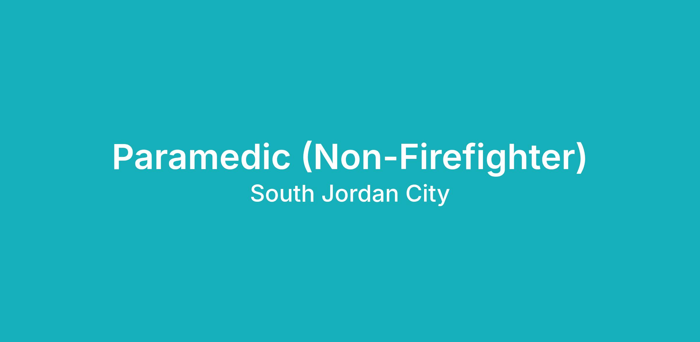 The City of South Jordan is hiring a full-time Paramedic (Non-Firefighter) to support our Emergency Medical Services division. This position responds to emergency and non-emergency calls, provides high-level medical care, and assists with community health and education programs. If you are a licensed paramedic looking to make an impact in a fast-paced, team-oriented environment-we encourage you to apply.