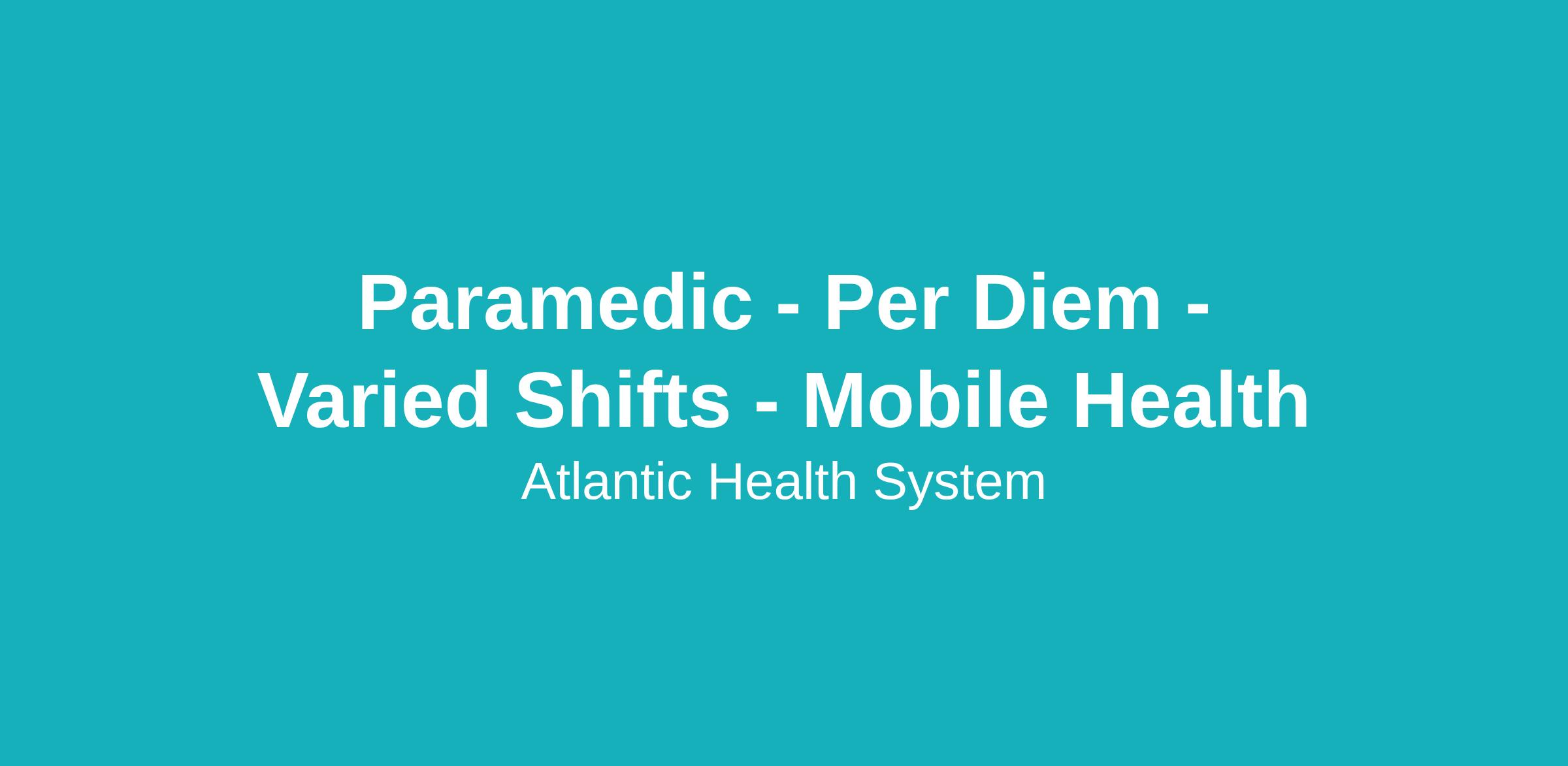 DescriptionAtlantic Health System is seeking a Per Diem Paramedic to join our Atlantic Mobile Health Division.