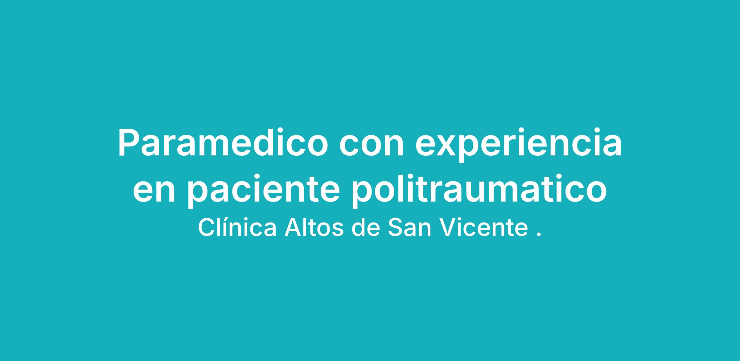 IPS especialista en traumatología requiere cubrir vacante de PARAMÉDICO en la ciudad de Barranquilla- Atlántico, con mínimo 2 años de experiencia en atención a pacientes SOAT, ARL, pólizas, traslado de pacientes básicos y medicalizados velando por el cumplimiento de protocolos de seguridad del paciente.Requisitos: Diploma auxiliar en enfermería, curso de actualización: APH, Primeros auxilios, BLS/ACLS, atención a victimas de violencia sexual, atención a victimas de ataques con agentes químicos (Todos actualizados). Esquema de vacunación actualizado.