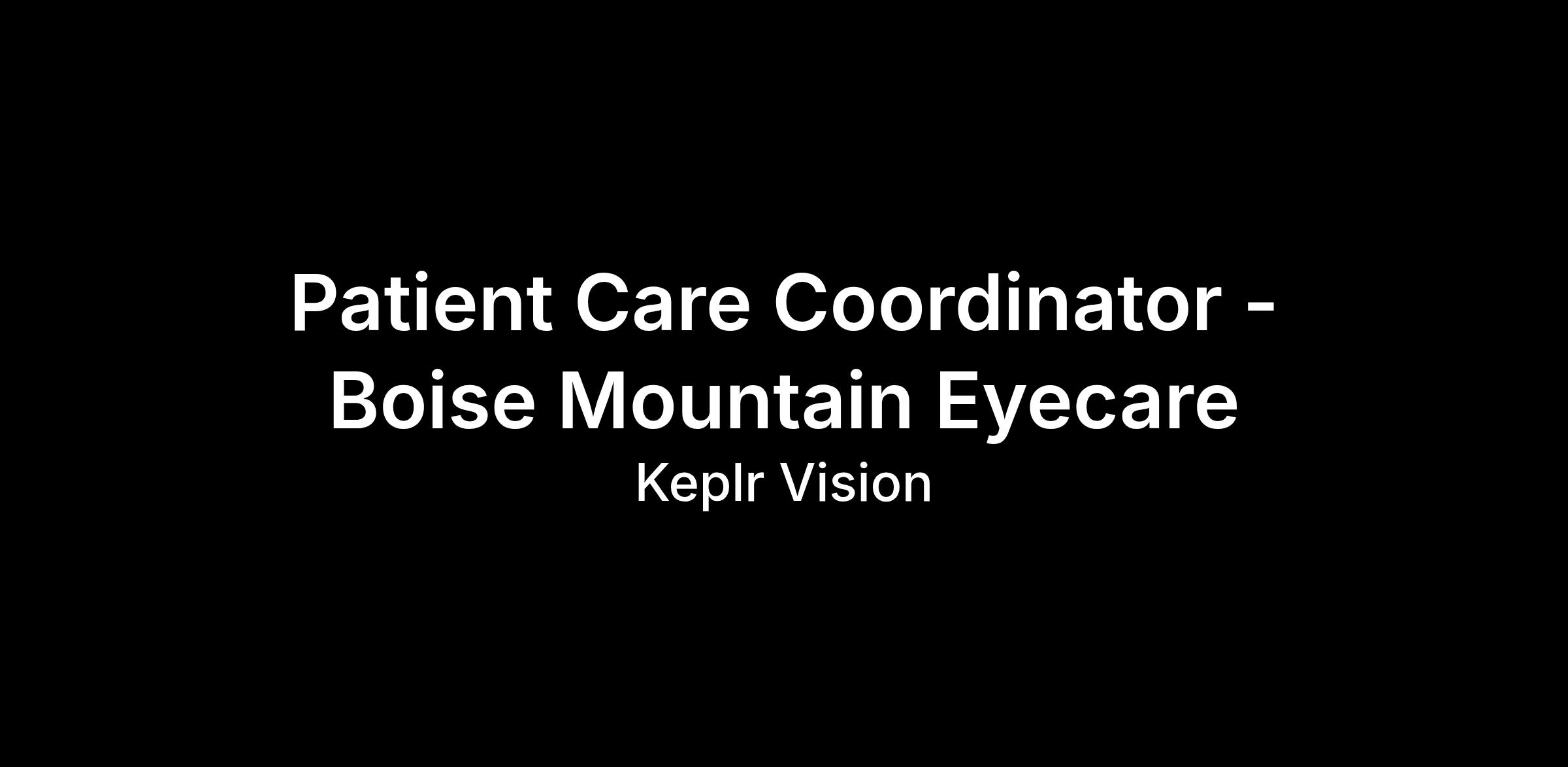 Patient Care Coordinator - Boise Mountain Eyecare
