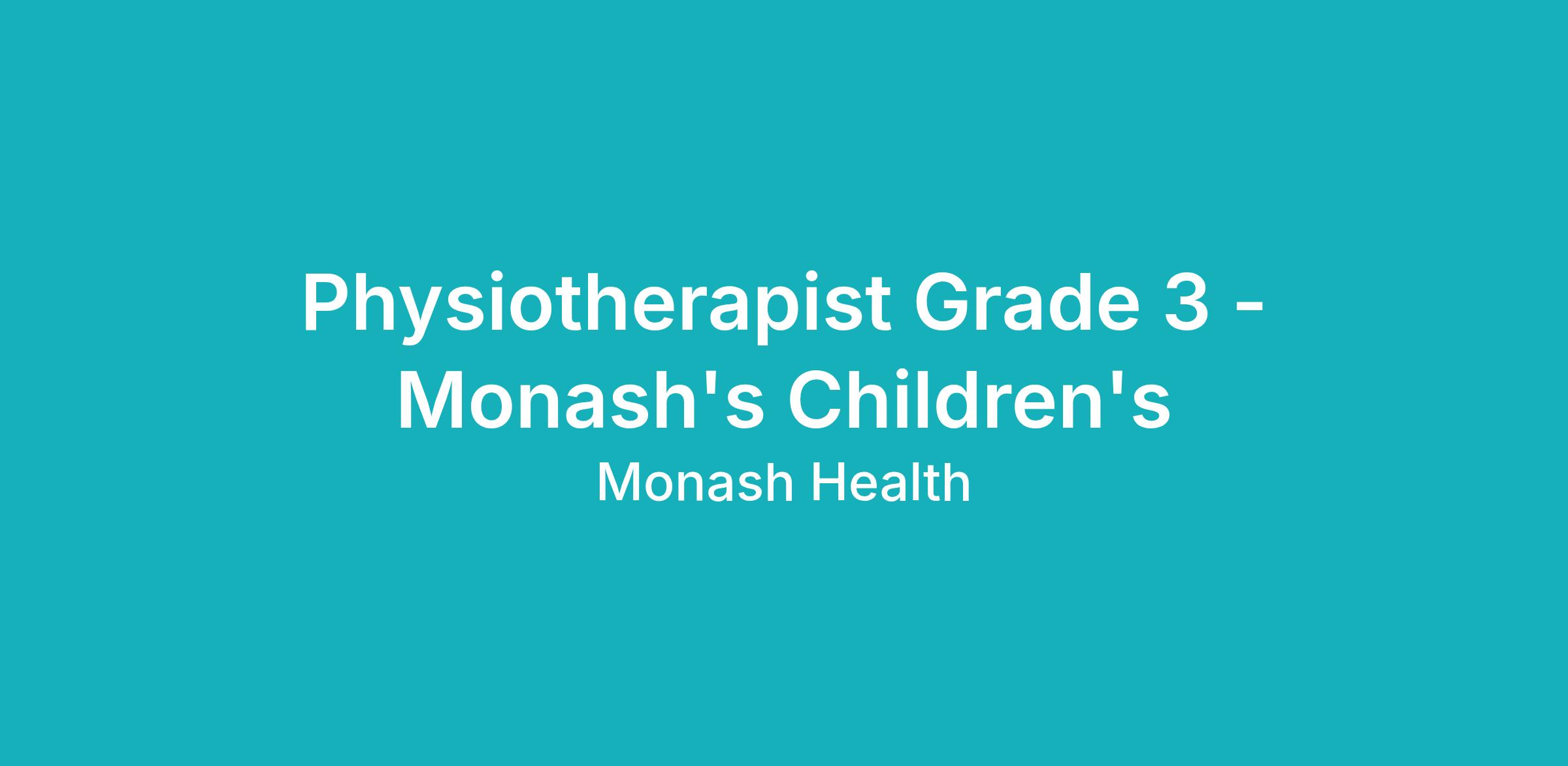 Join our team as a Grade 3 Paediatric Physiotherapist on a part-time, ongoing (30.4 hours per fortnight / 0.40 EFT) basis, based at the Monash Children’s Hospital.