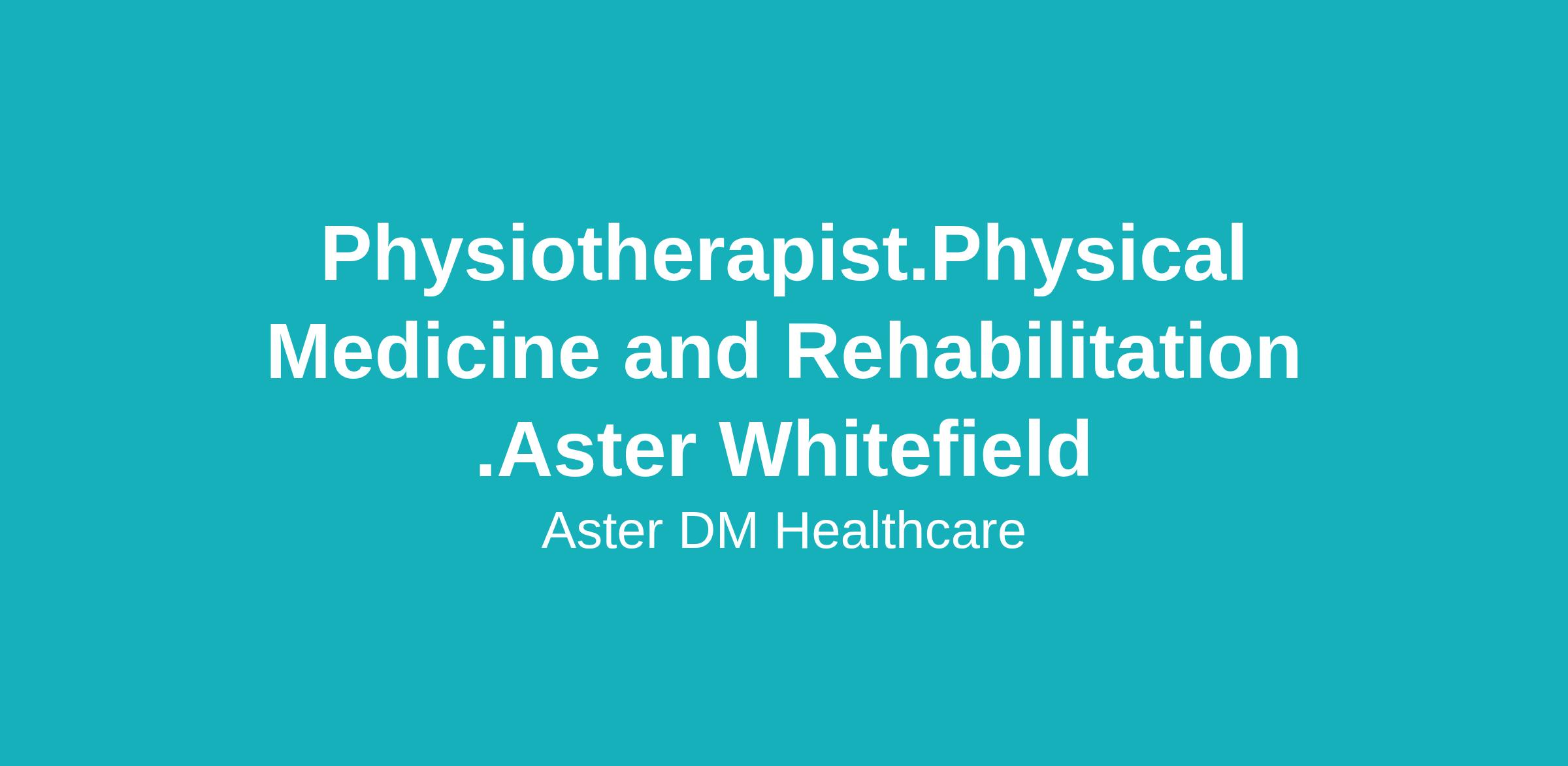 Physiotherapist.Physical Medicine and Rehabilitation .Aster Whitefield