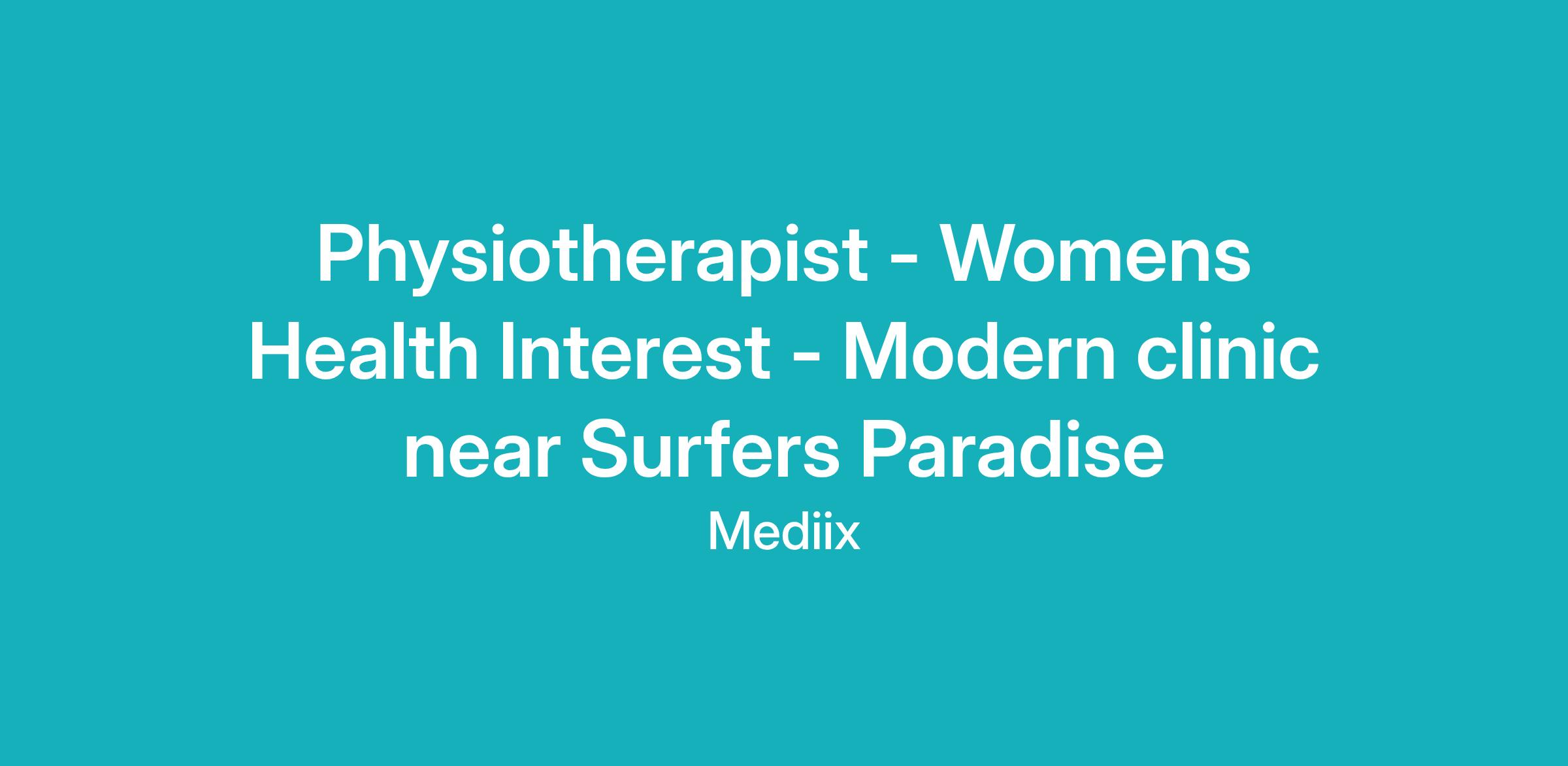 Physiotherapist | Women’s Health Interest | Modern Clinic Near Surfers Paradise