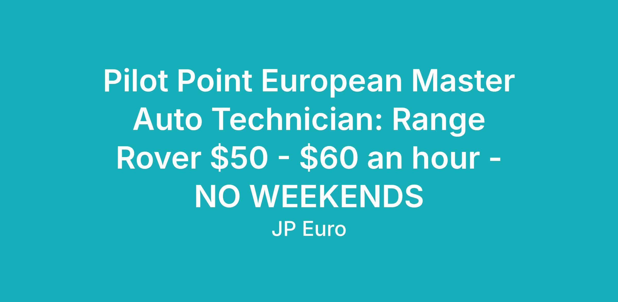Pilot Point European Master Auto Technician: Range Rover $50 - $60 an hour - NO WEEKENDS