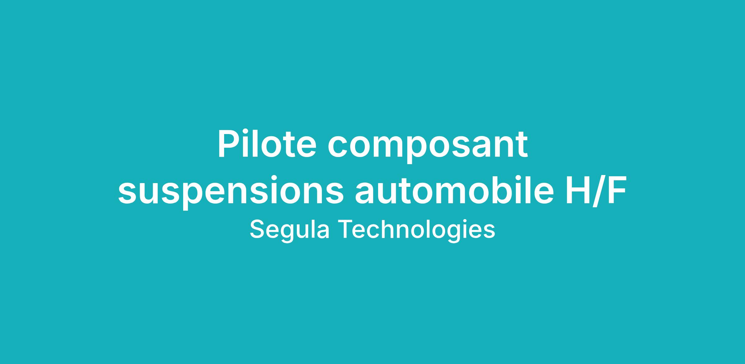 Dans le cadre du développement de notre activité dans le secteur automobile, nous recherchons un Pilote composant suspensions automobile H/F pour notre Pôle Châssis Liaison Au Sol.
