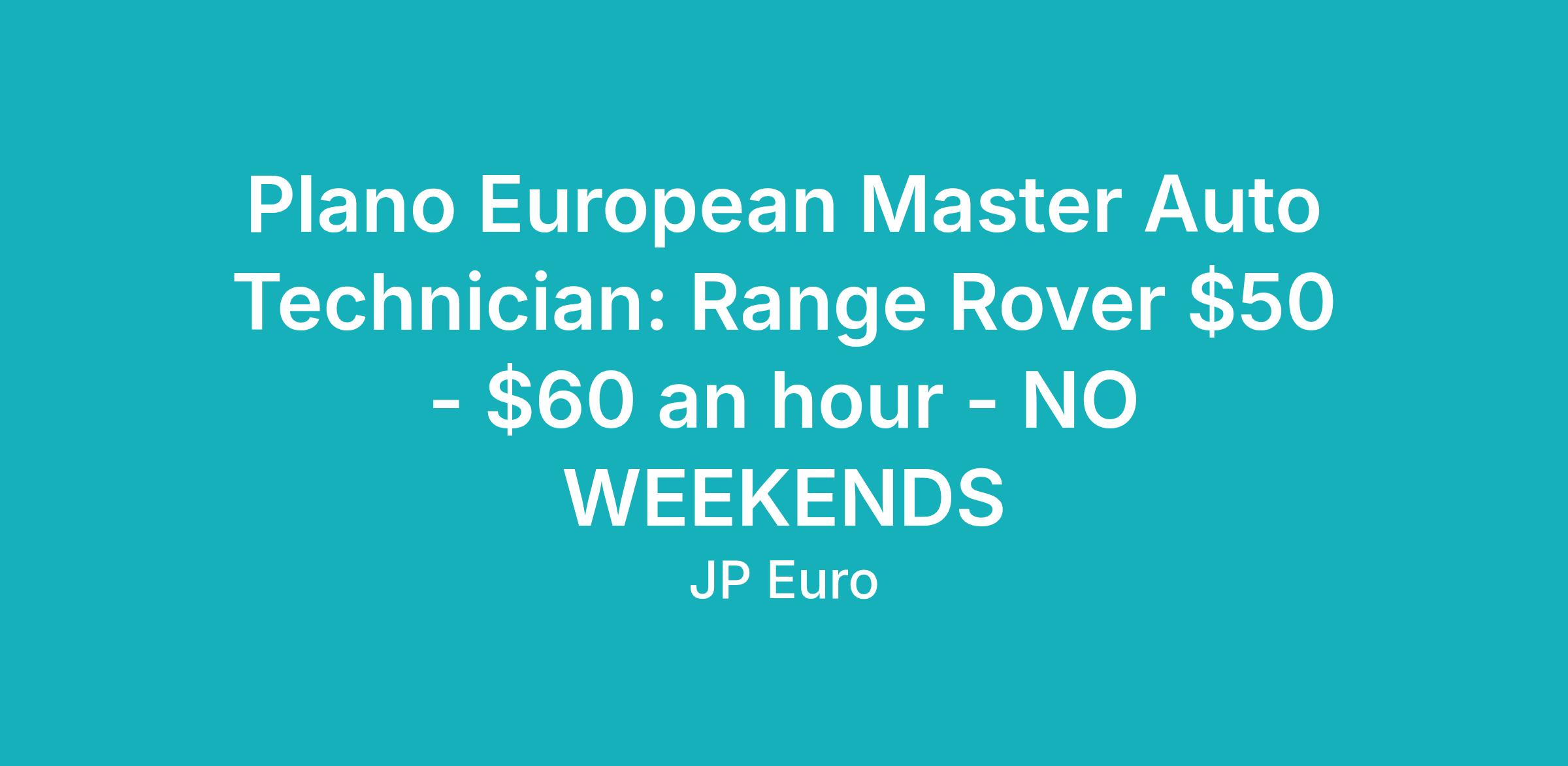 Plano European Master Auto Technician: Range Rover $50 - $60 an hour - NO WEEKENDS