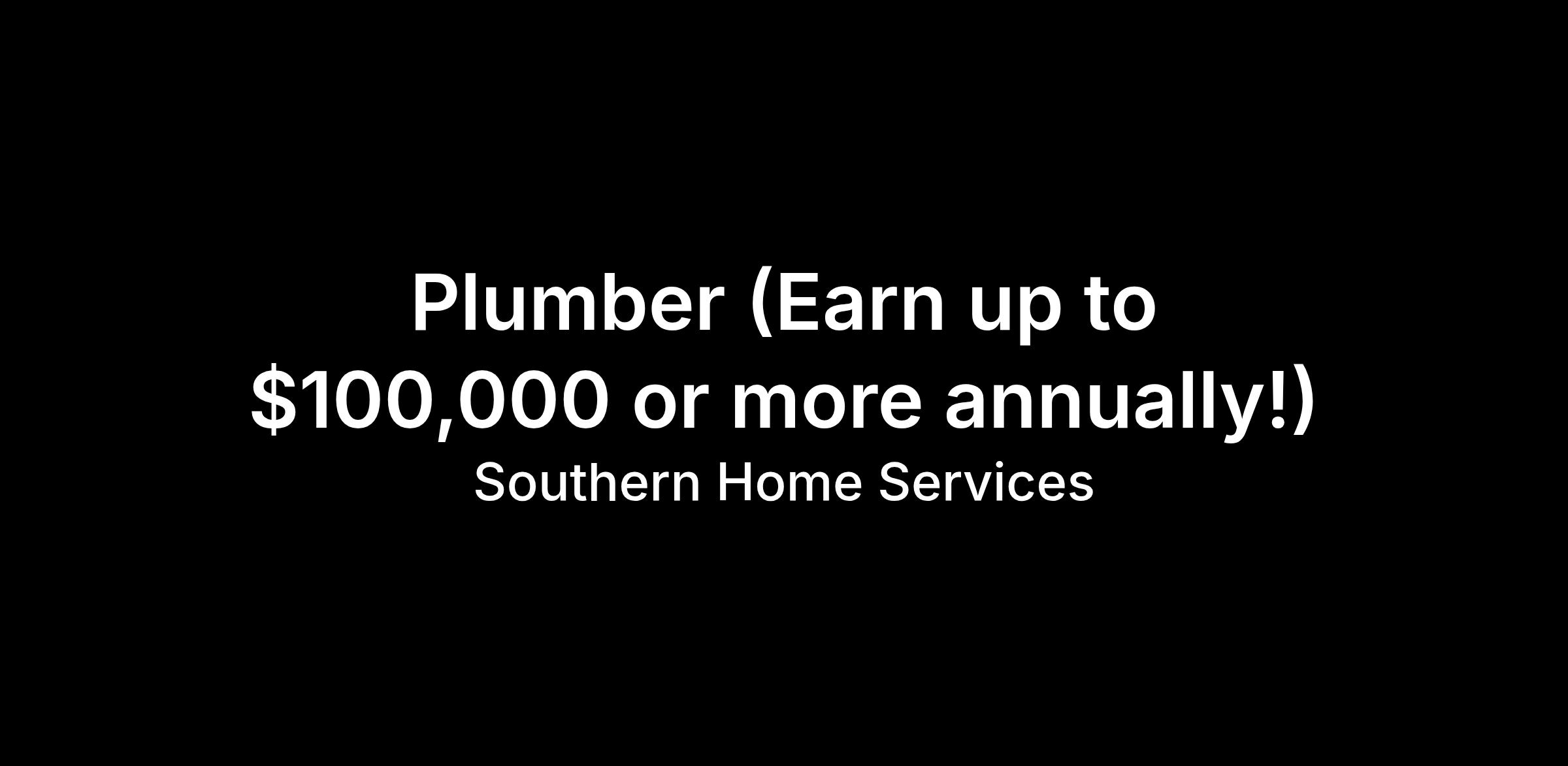 Plumber (Earn up to $100,000 or more annually!)