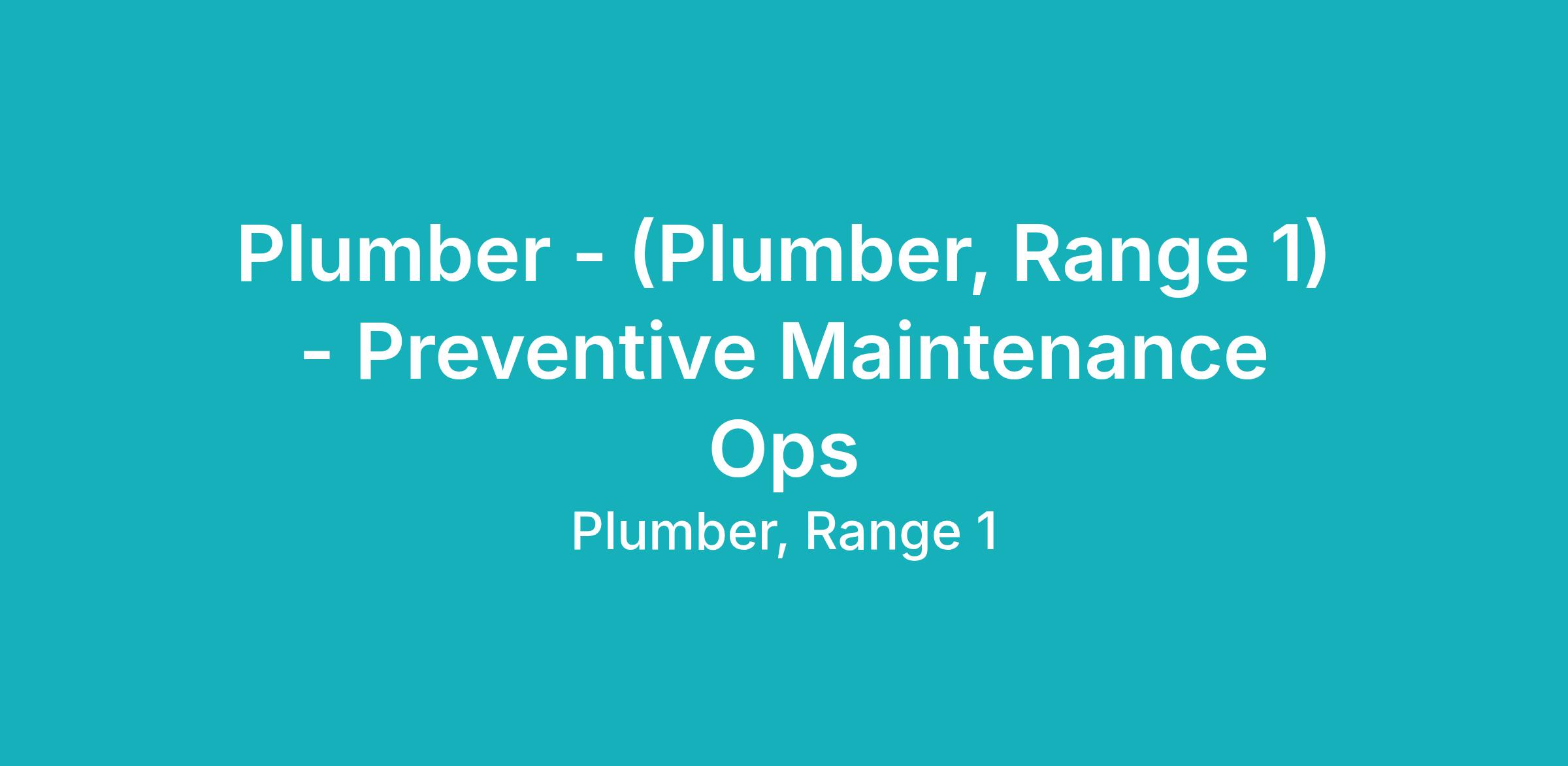 Responsible for a full range of skilled plumbing work including the installation, maintenance, inspection, modification, remodeling and repair of mechanical plumbing equipment and fixtures for water, gas, oil, steam, sewage, fire sprinkler, and refrigeration-related plumbing systems, including automated plumbing systems. This position’s work schedule is subject to change, with appropriate notice.