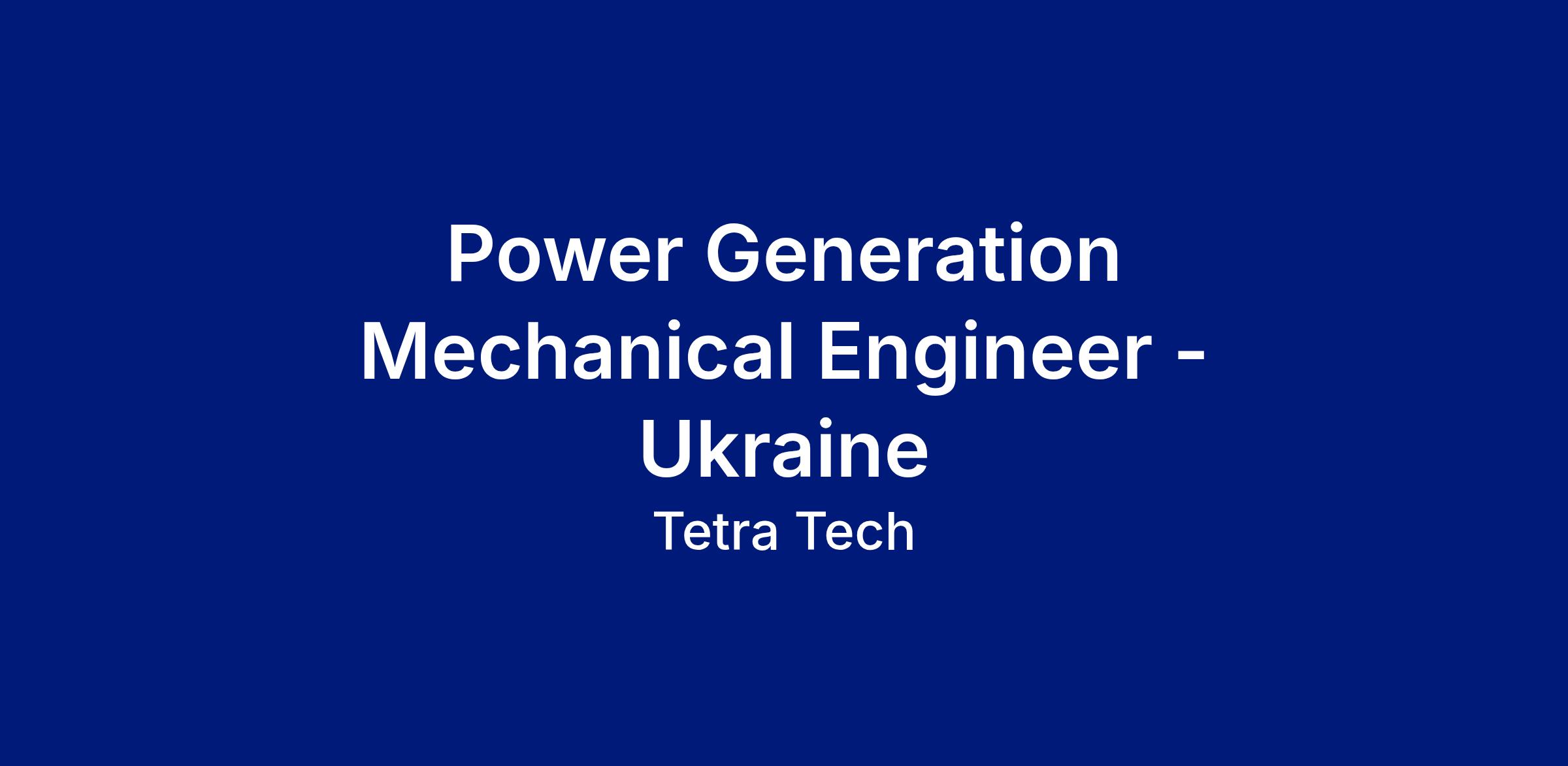Tetra Tech is seeking a Power Generation Mechanical Engineer to be considered in a candidates’ pipeline of technical experts for project activities supporting the reconstruction of energy infrastructure in Ukraine.