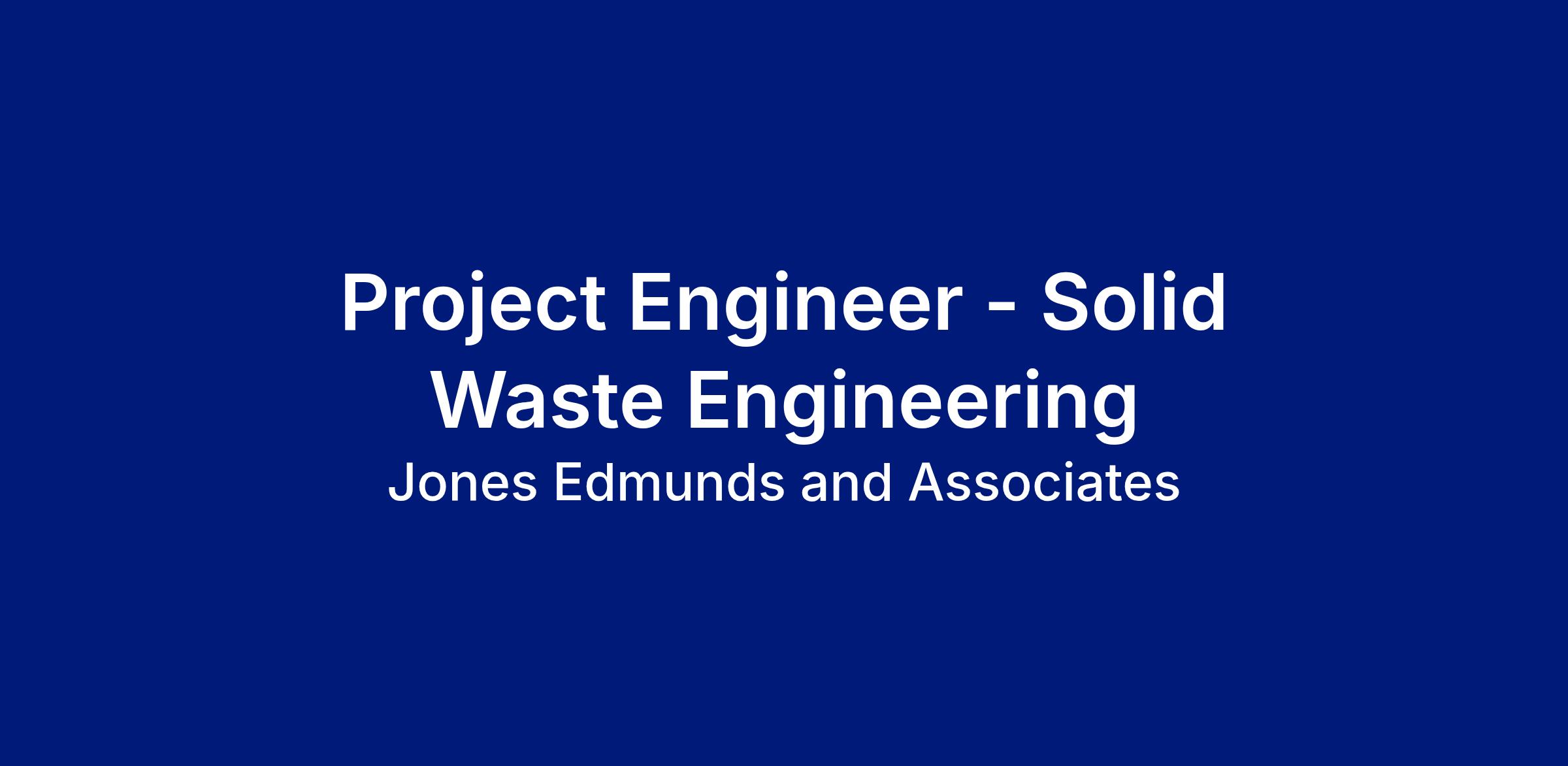 At Jones Edmunds, we help communities thrive through innovative engineering and consulting solutions. We’re looking for a skilled and motivated Project Engineer to join our Solid Waste Engineering team.