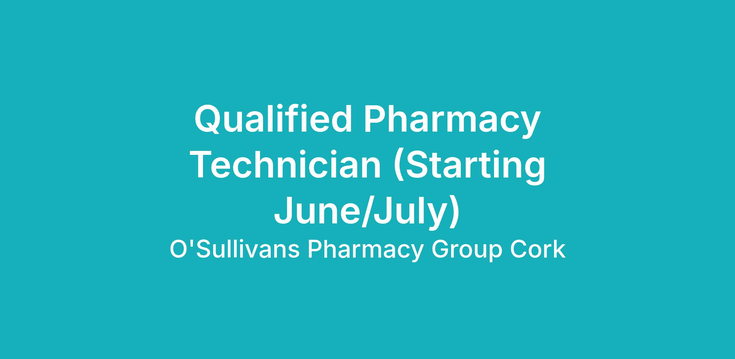 We are hiring for a 6 month to a year Pharmacy Technician for our Douglas Store next to Centra South Douglas Rd, Cork, for Maternity Leave Cover