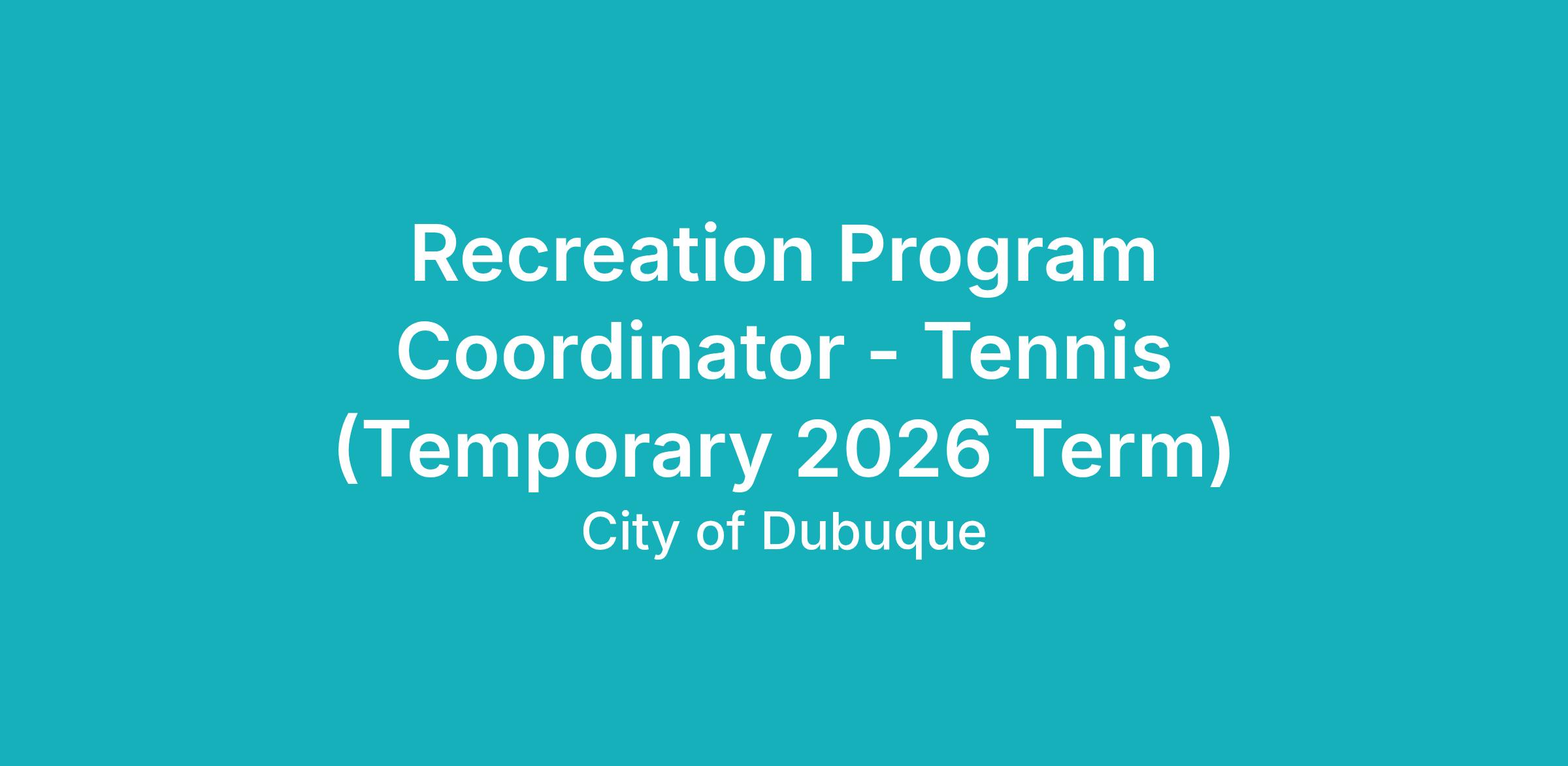 JOB SUMMARY: The Tennis Program Coordinator will manage and coordinate the tennis program and services; manage and train tennis instructors; supervise six seasonal instructors working at three different tennis court locations within the city; maintain responsibility for execution of summer tennis program consisting of youth lessons, adult lessons and season-ending youth singles tournament; report to the Recreation Supervisor; complete evaluations of instructor staff; recommend program improvements; and perform other duties as assigned.