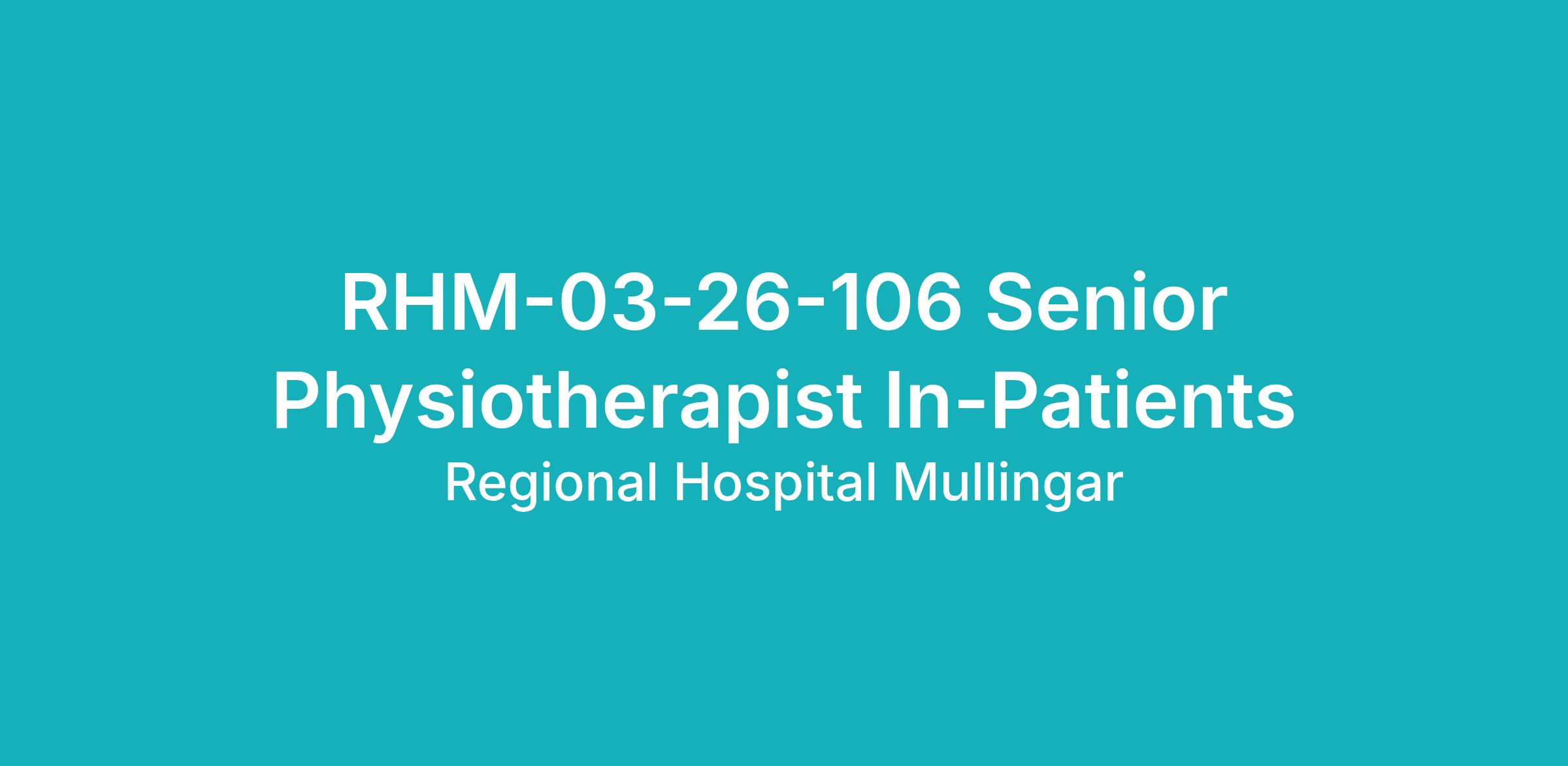 Senior Physiotherapist In-Patient Service, Medical/Surgical Wards, Regional Hospital Mullingar.