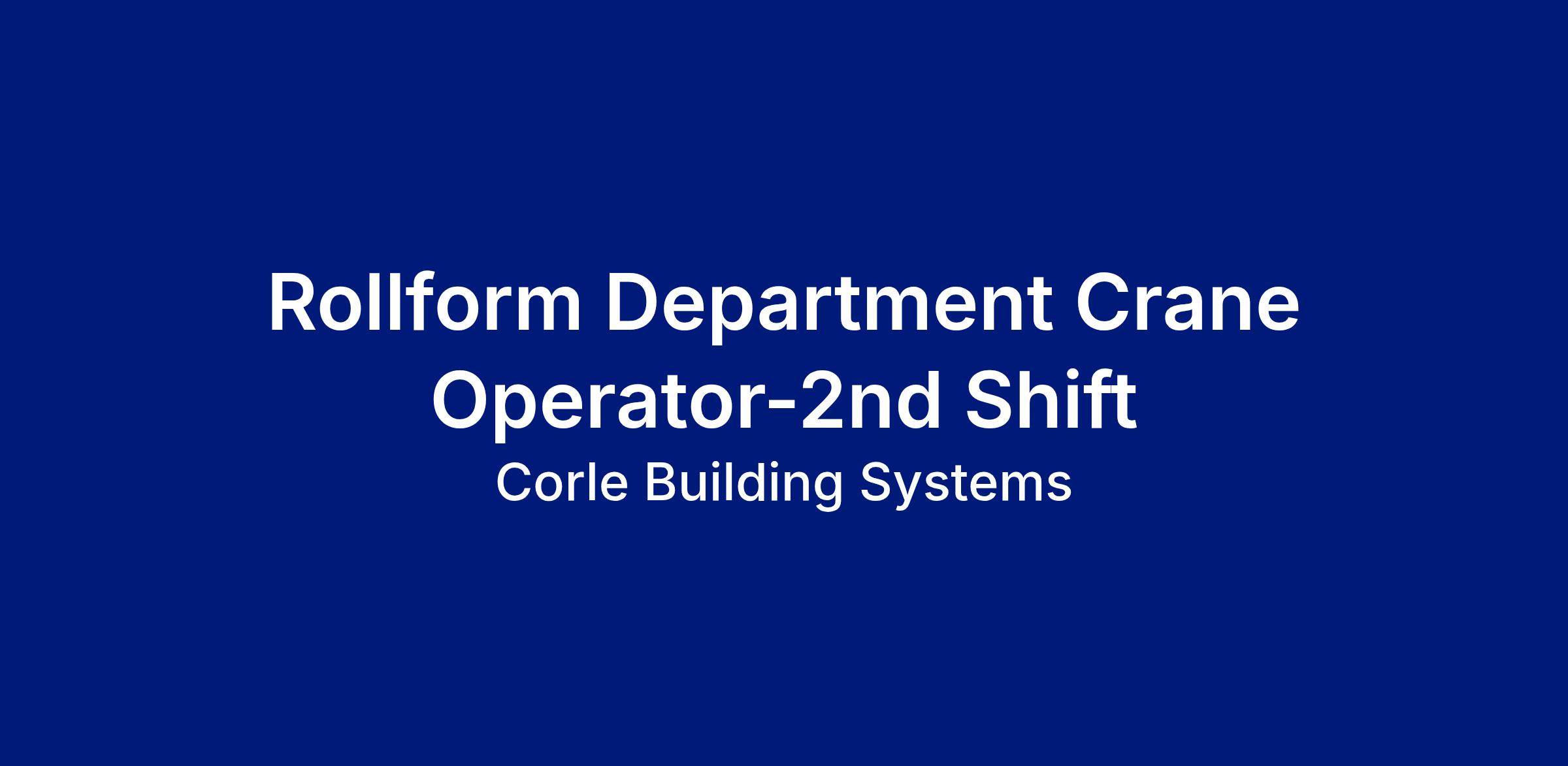 Due to continued growth, we have an immediate need for a Crane Operator in our Rollform Department on 2nd Shift.